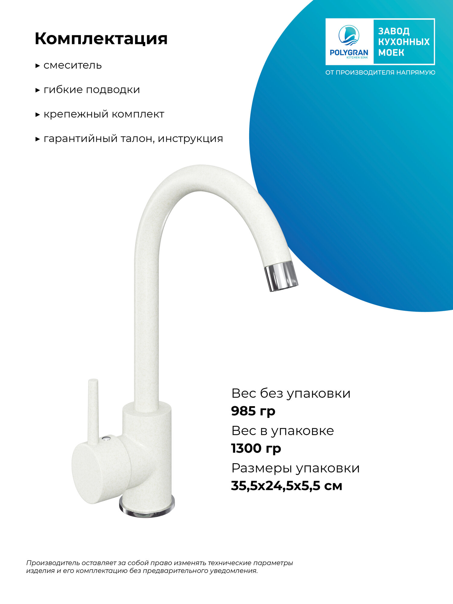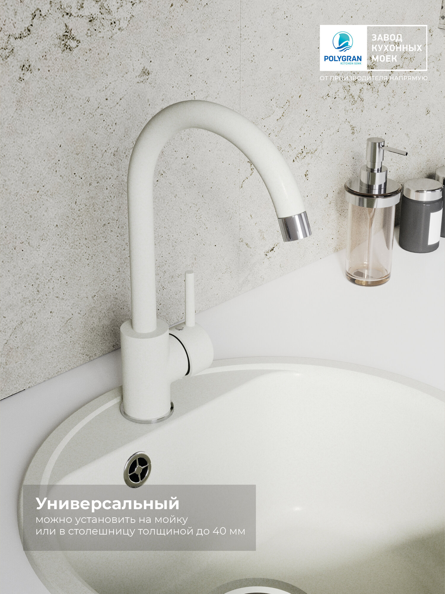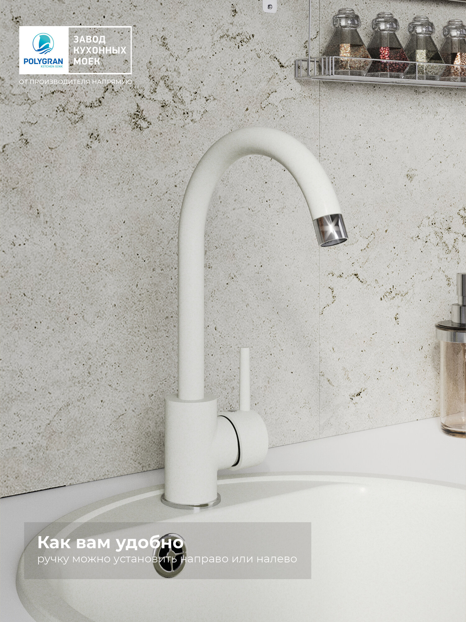 СохранитьСмеситель для кухни / мойки Polygran Элара Белый (Туман) / Латунный / Кран для кухни интересное: