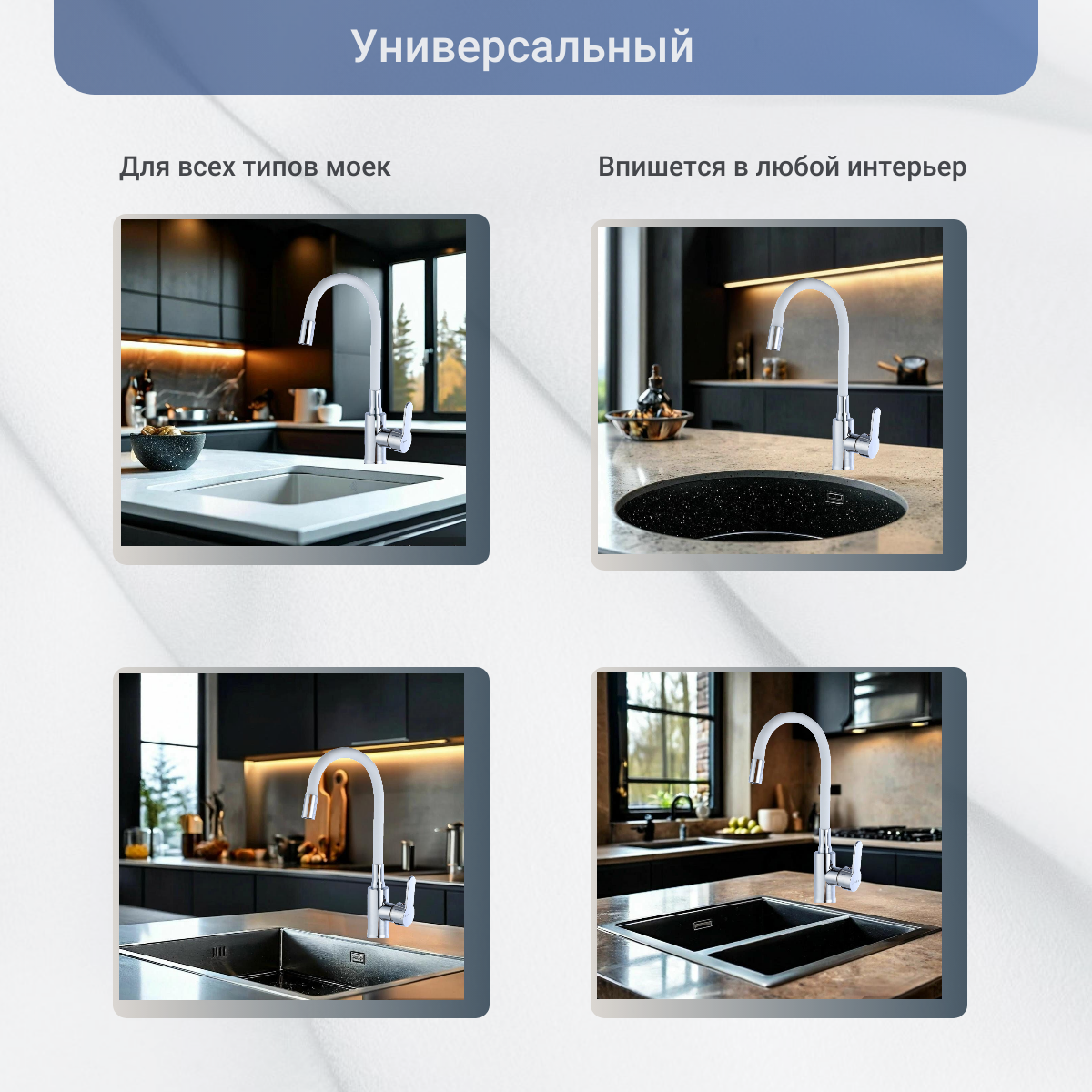 Смеситель для кухни с гибким изливом, кран для раковины, для мойки, белый интересное: