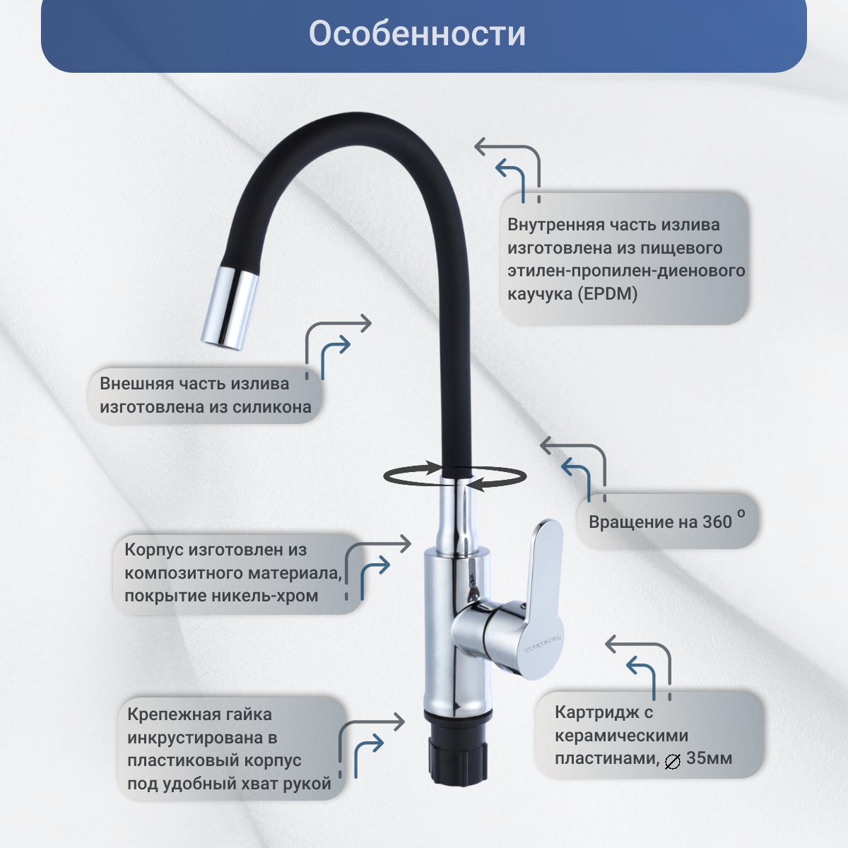 Смеситель для кухни с гибким изливом, кран для раковины, для мойки, черный интересное: