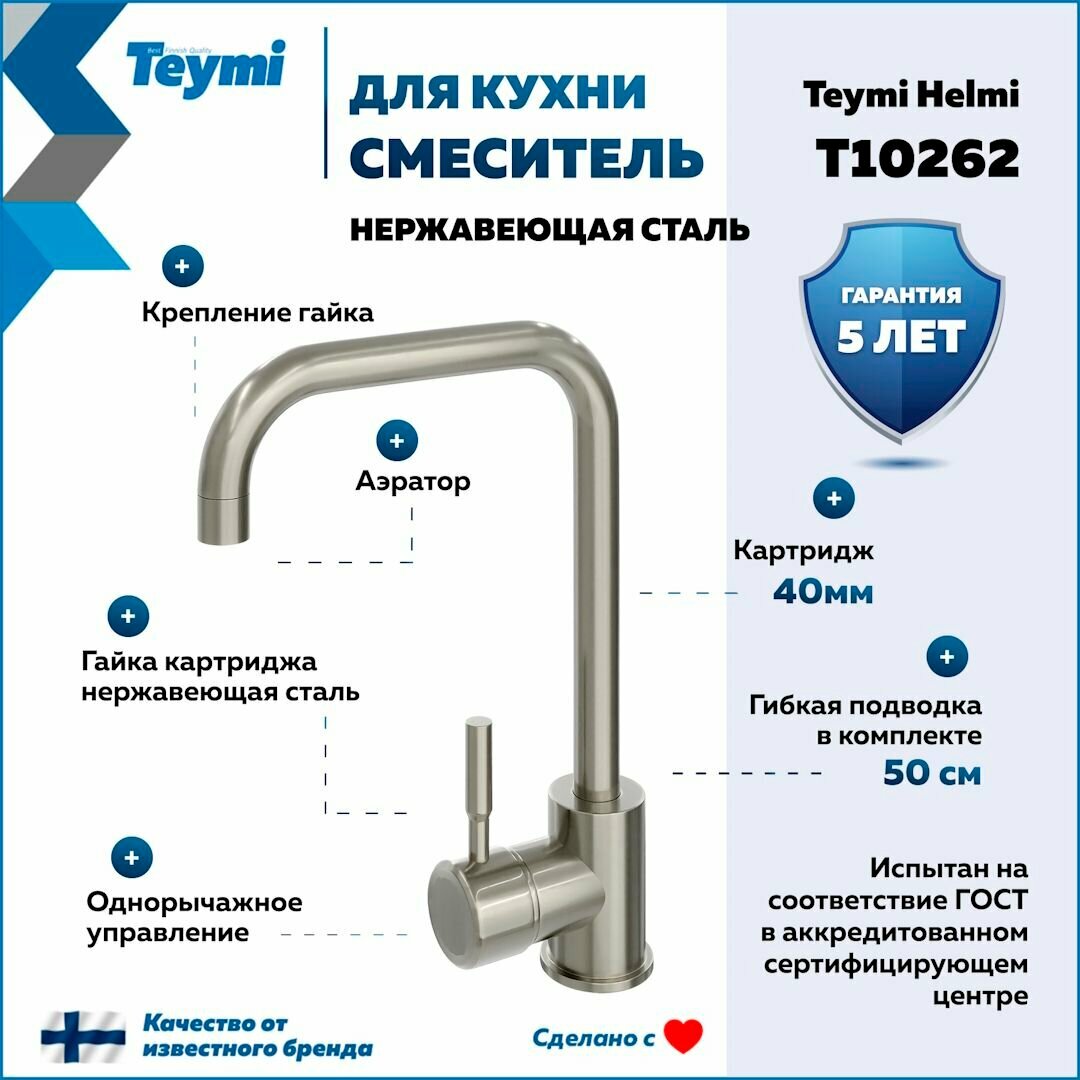 Смеситель для кухни нержавеющая сталь Teymi Helmi T10262 интересное: