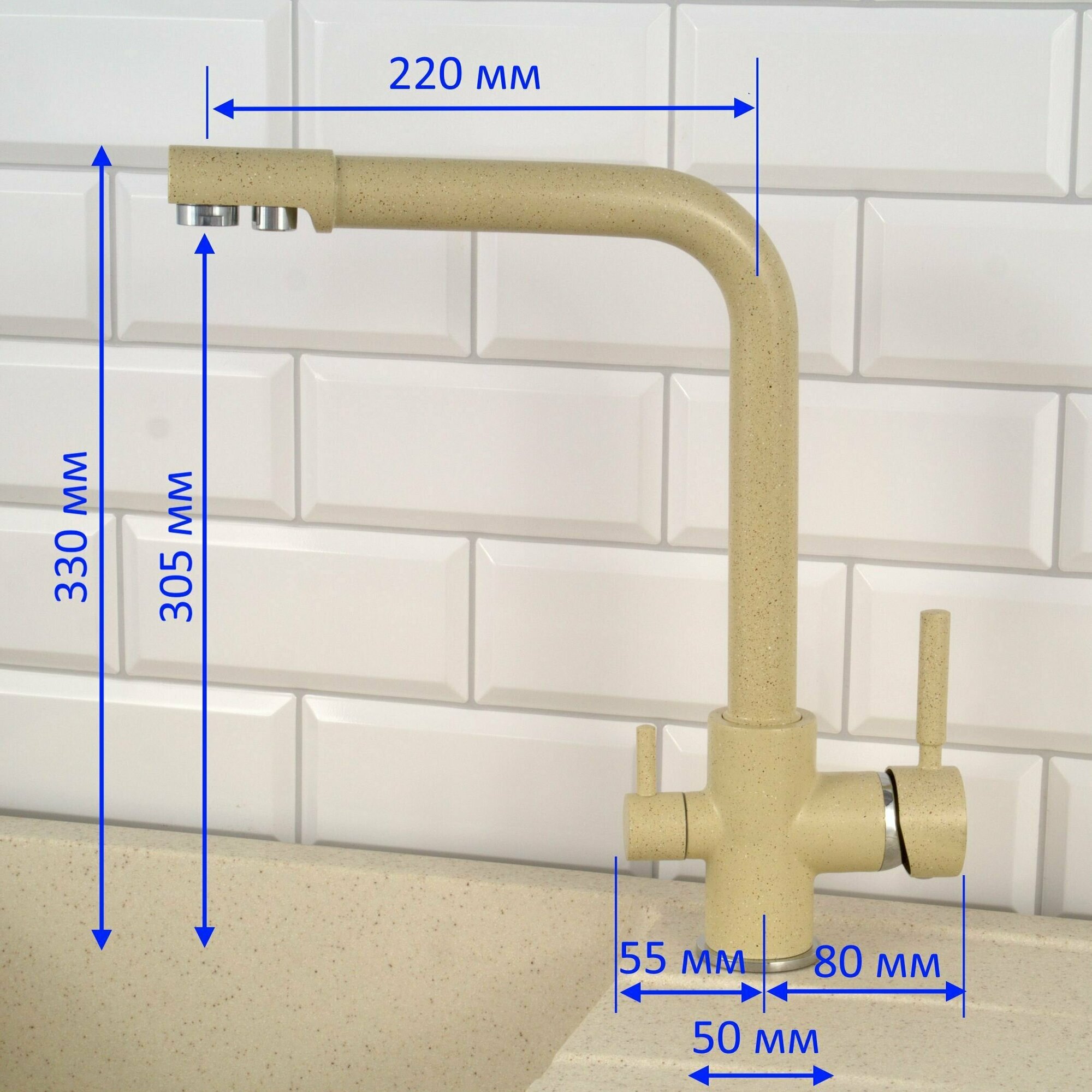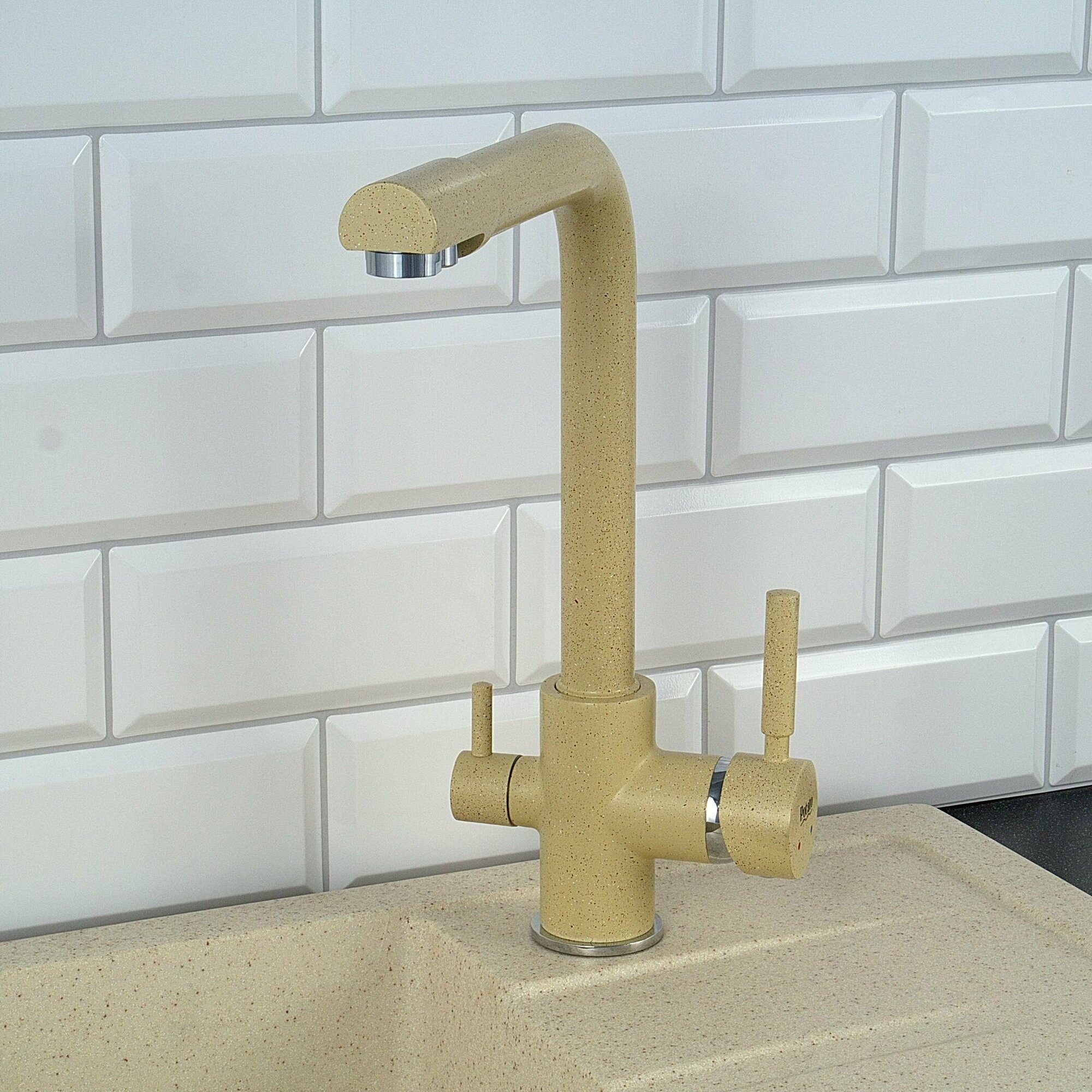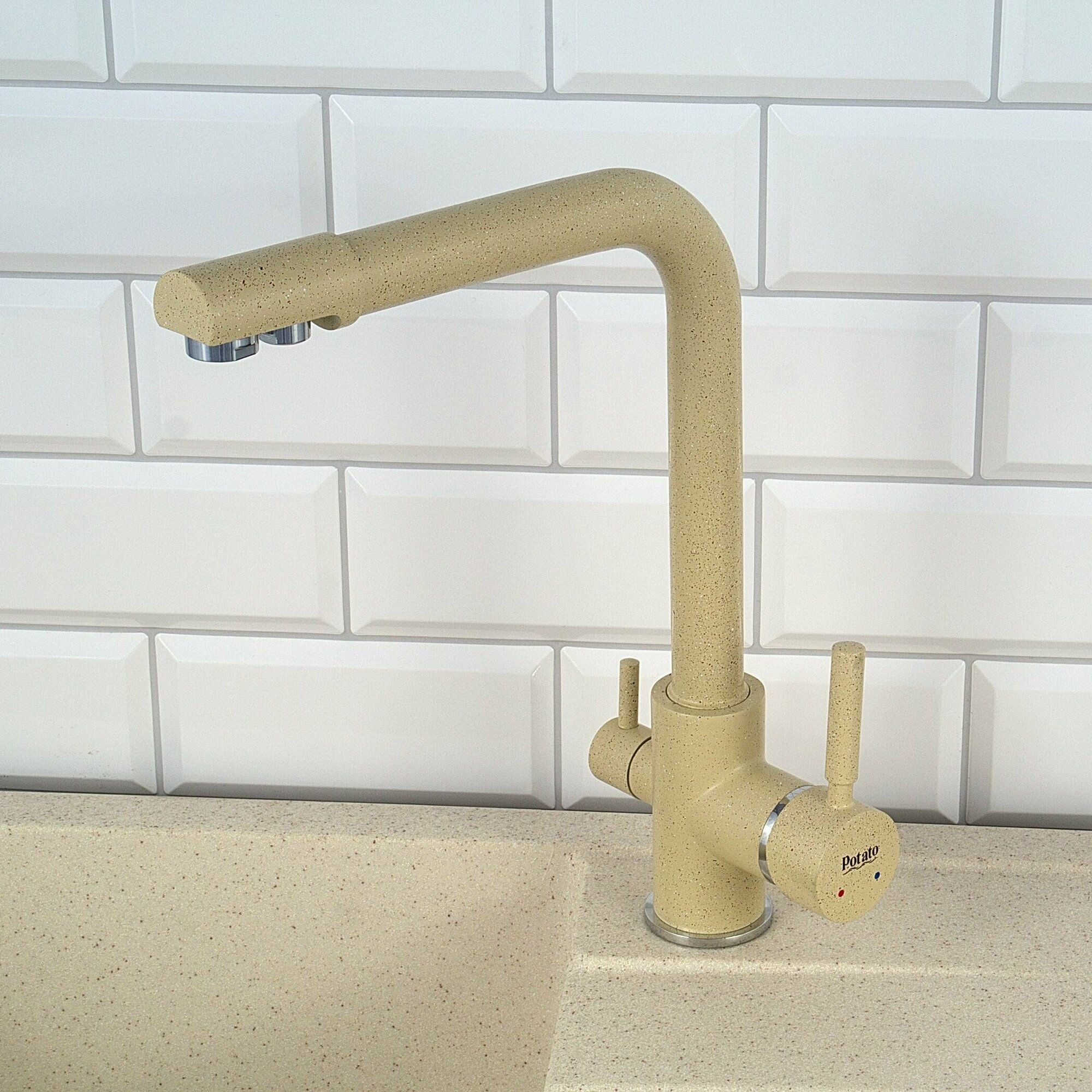 Смеситель на кухню Potato P4498-9 с краном для фильтрованной воды, картридж 35 мм, кремовый, крепление гайка интересное: