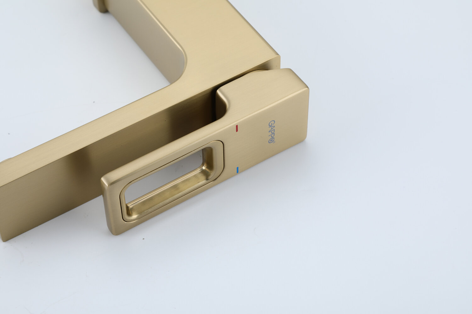 Смеситель для раковины (умывальника) Gappo G1017-3 латунь сатин/золотой интересное: