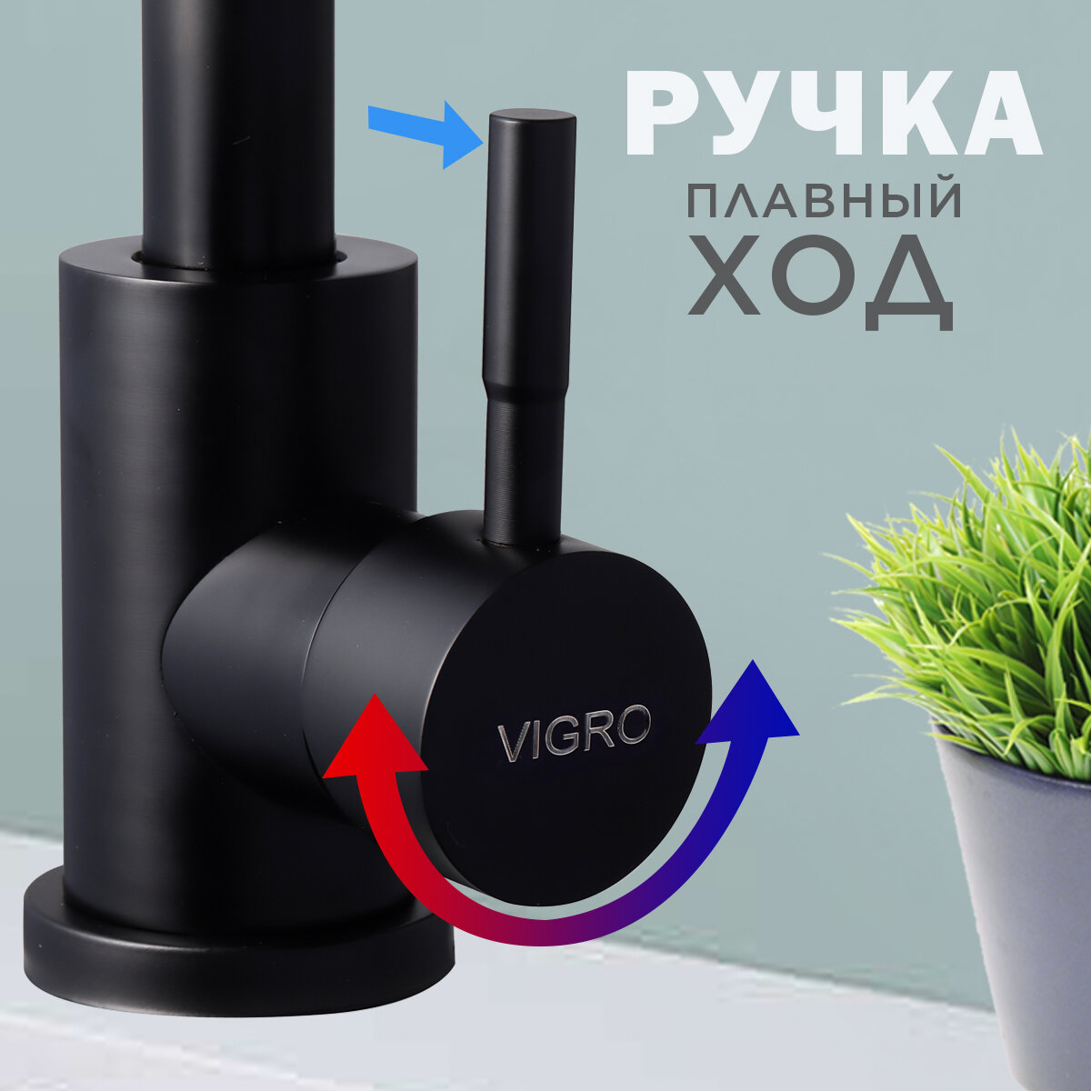 Смеситель для кухни из нержавеющая стали чёрный матовый VIGRO VG71304-7 интересное: