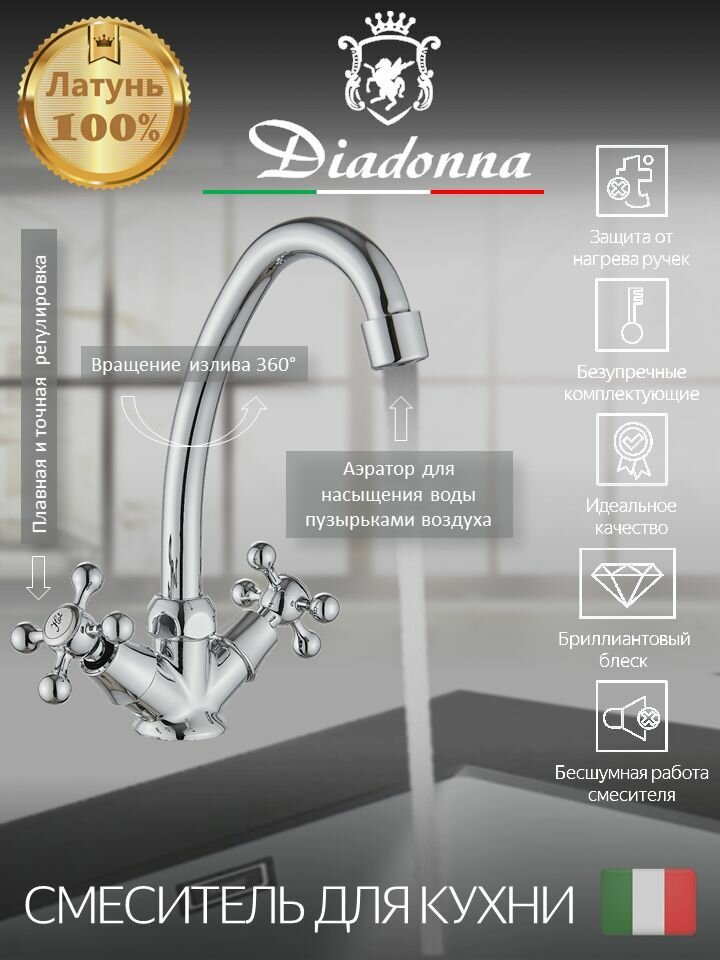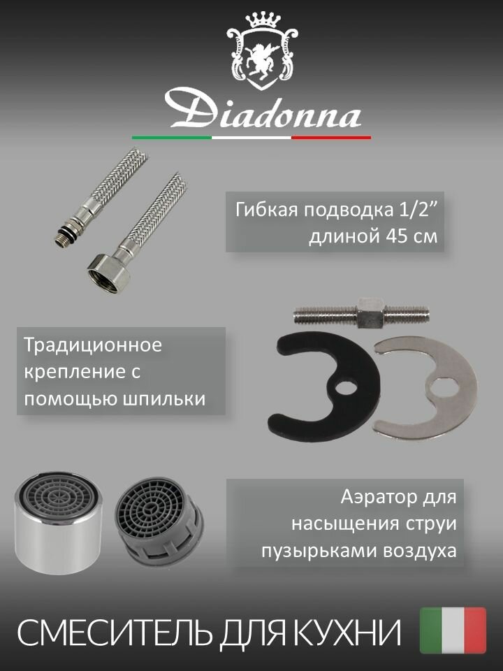 Смеситель на кухню Diadonna D400-65 высокий излив, керамические кран-буксы, хром, крепление шпилька интересное:
