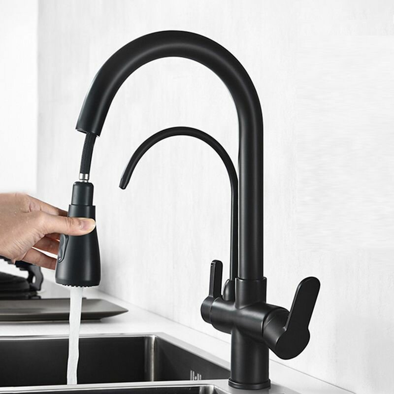 Купить Смеситель для кухни с фильтром для питьевой воды, с гибким изливом, ванны с душем, раковины в ванную, кран для кухни, черный