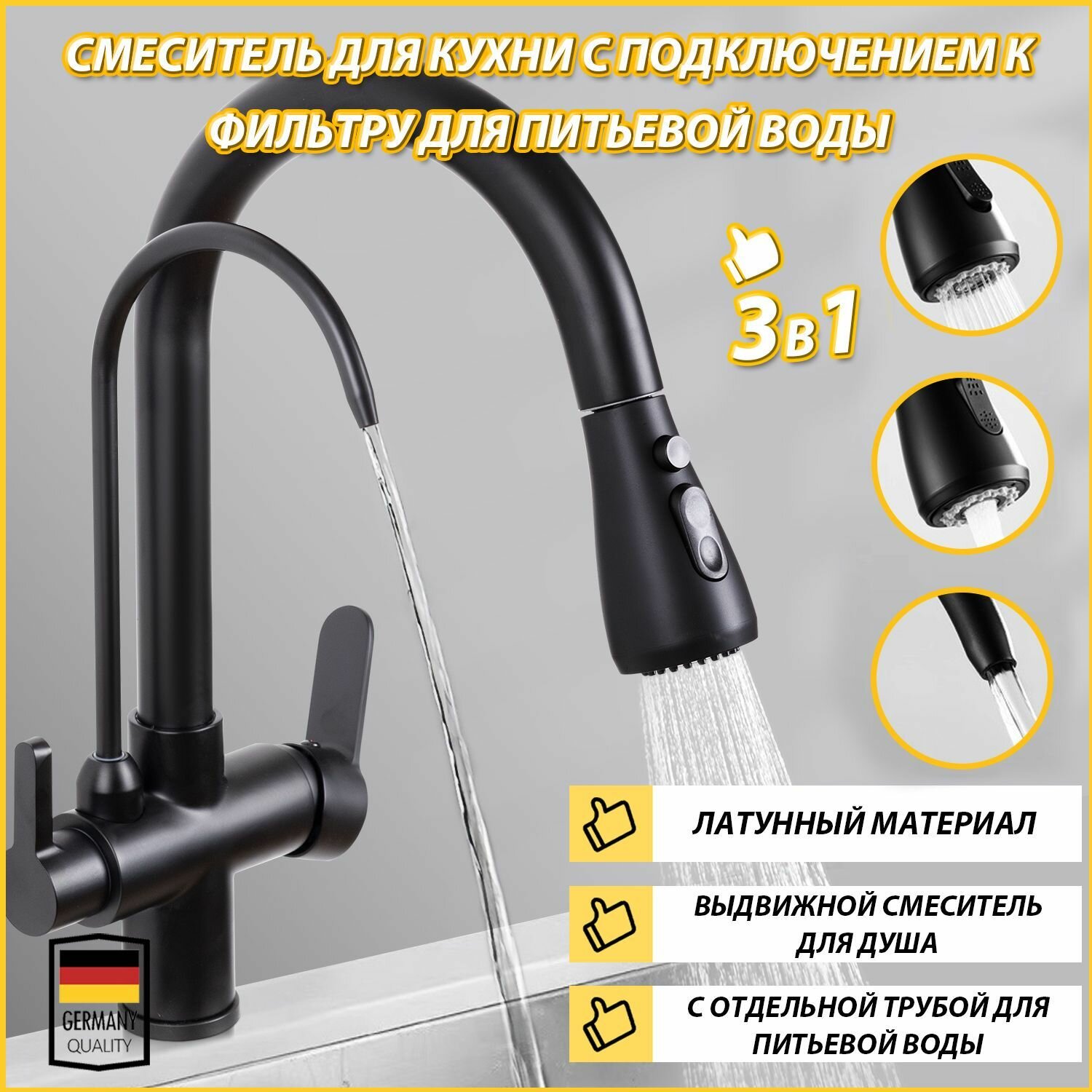 Ниже Вы можете прочитать отзывы на Смеситель для кухни с фильтром для питьевой воды, с гибким изливом, ванны с душем, раковины в ванную, кран для кухни, черный, ознакомится с подробными характеристиками, посмотреть интересные обзоры и фотографии на Смеситель для кухни с фильтром для питьевой воды, с гибким изливом, ванны с душем, раковины в ванную, кран для кухни, черный.