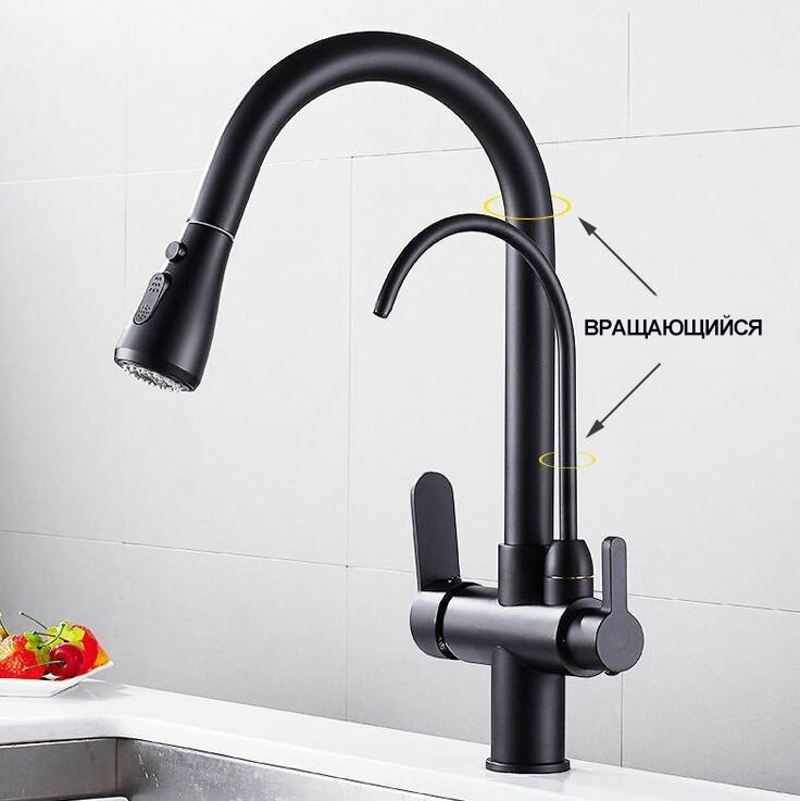 СохранитьСмеситель для кухни с фильтром для питьевой воды, с гибким изливом, ванны с душем, раковины в ванную, кран для кухни, черный интересное:
