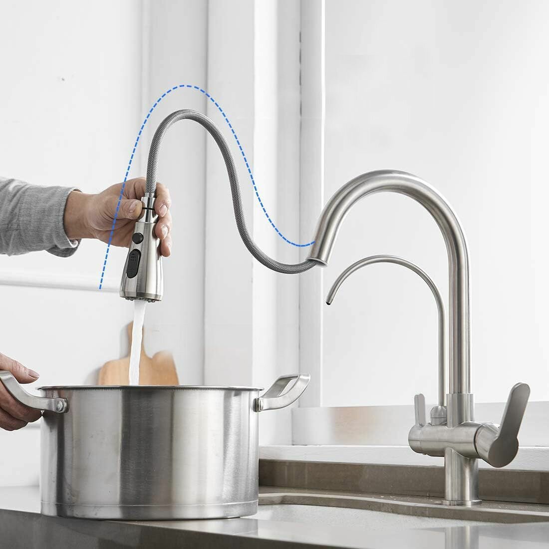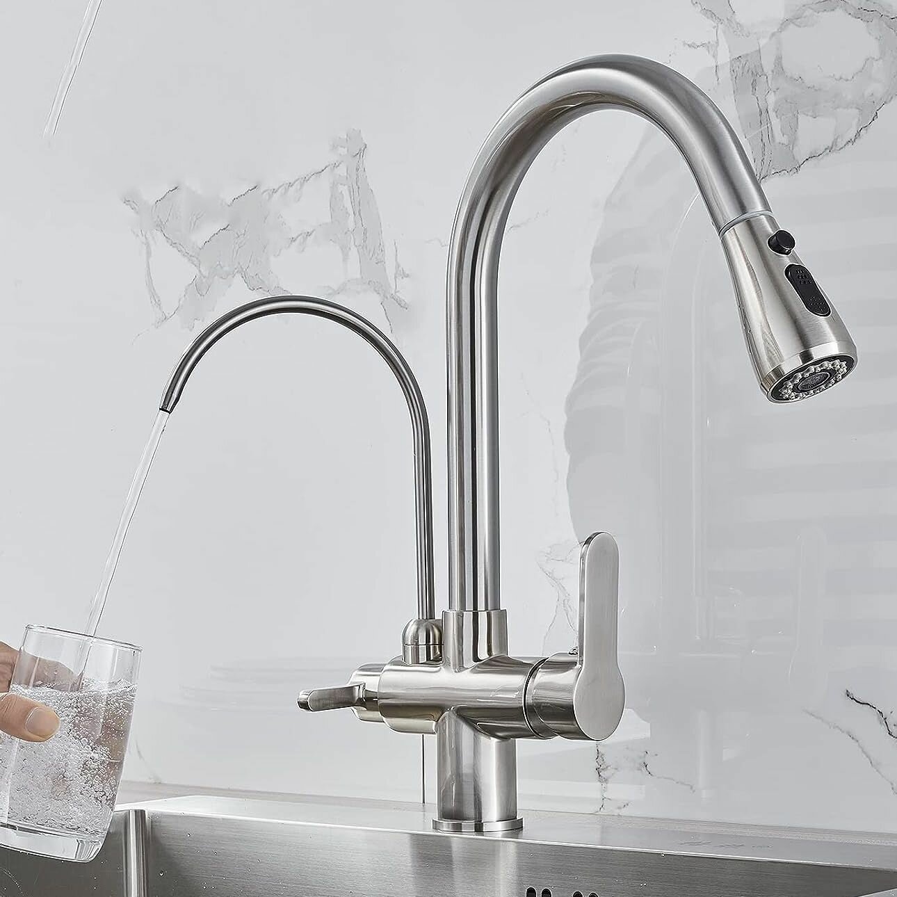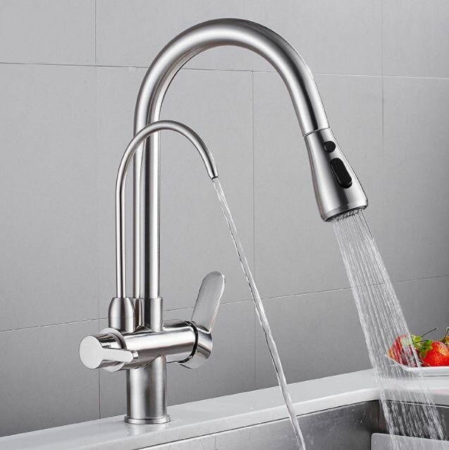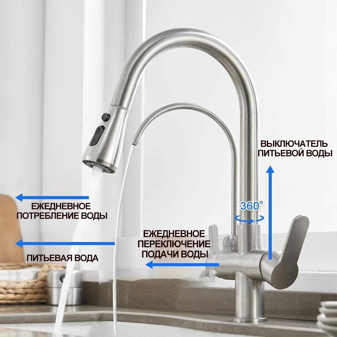 Купить Смеситель для кухни с фильтром для питьевой воды, с гибким изливом, ванны с душем, раковины в ванную, кран для кухни, щетка никелированная
