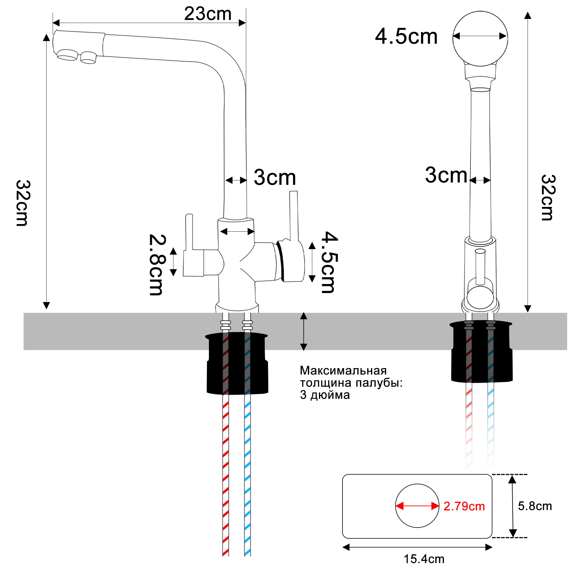Смеситель для кухни, с фильтром для питьевой воды, кран для кухни, 2 в 1, ванны, раковины в ванную, 320MM, черный