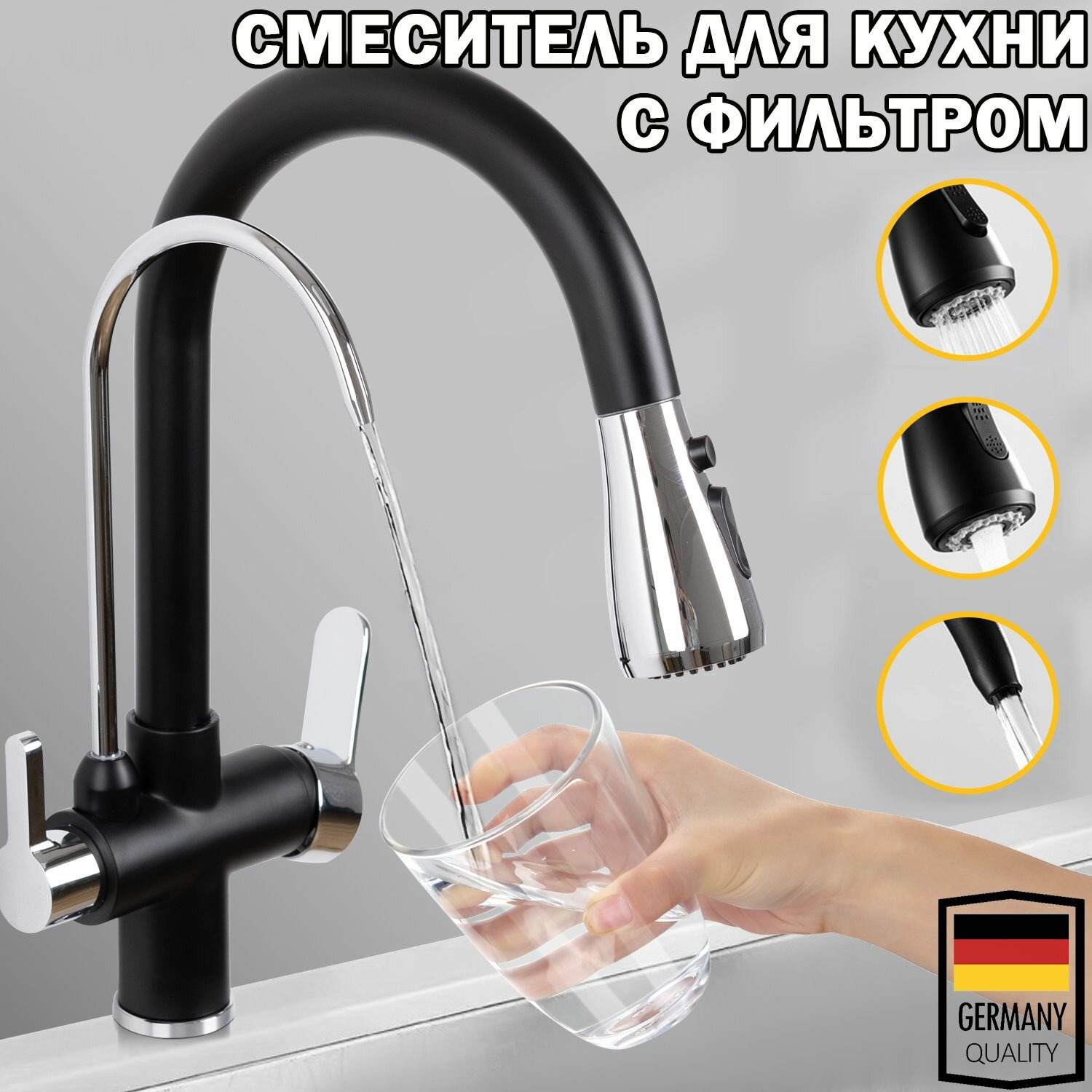 Смеситель для кухни с фильтром для питьевой воды, с гибким изливом, ванны с душем, раковины в ванную, кран для кухни, черный
