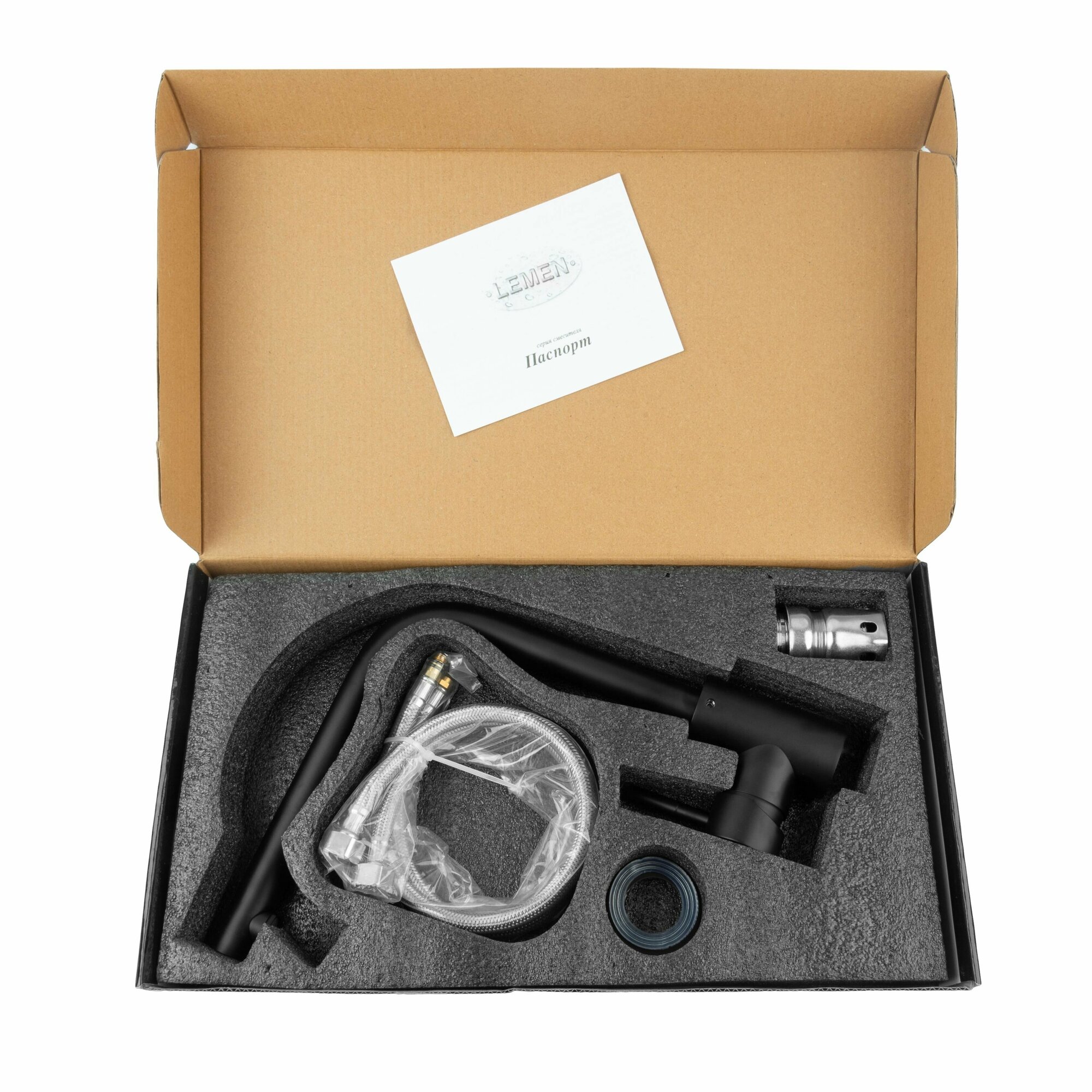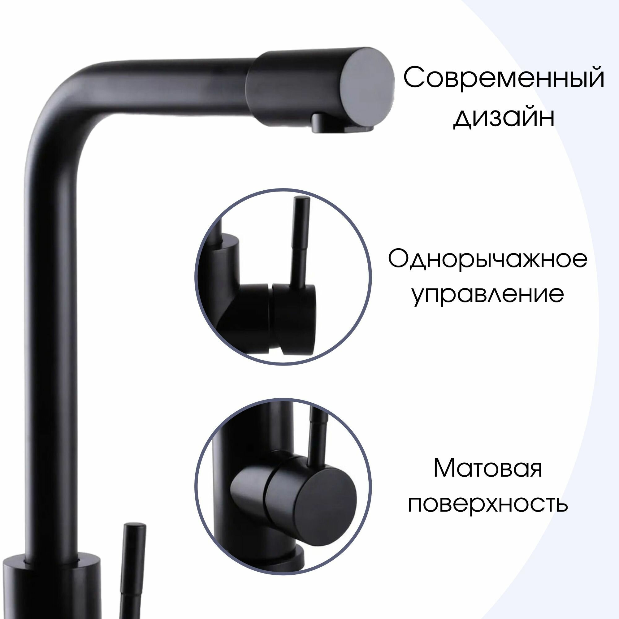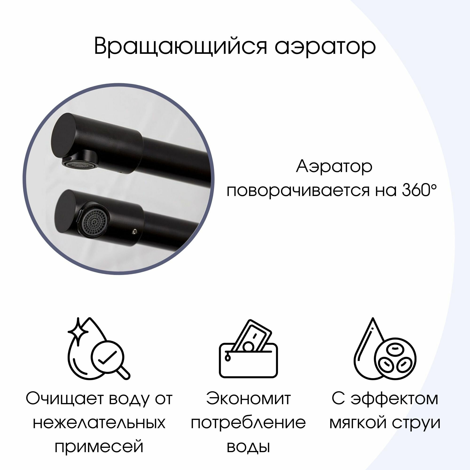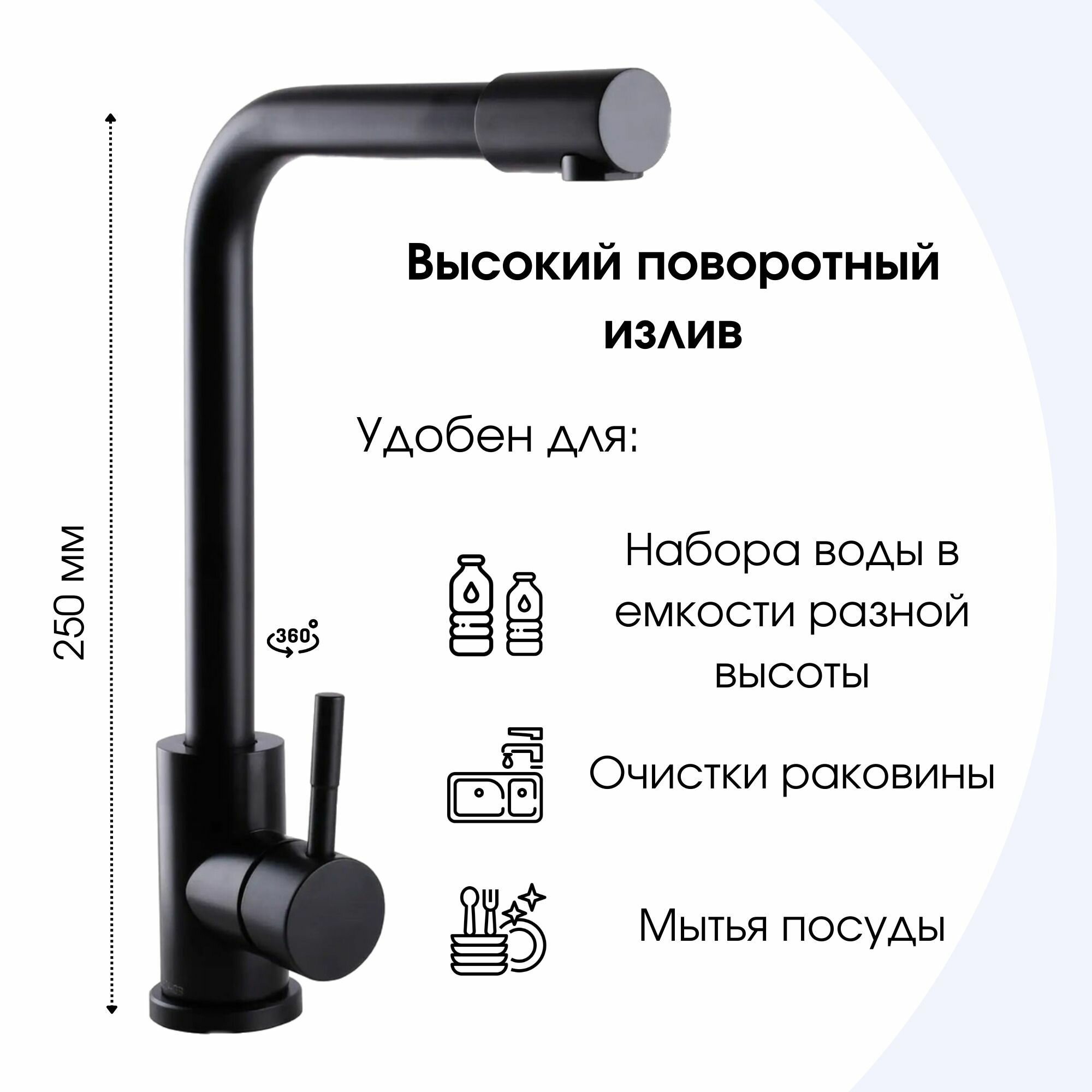 Смеситель для кухни, однорычажный, высокий, поворотный аэратор 360 градусов, нержавеющая сталь, черный интересное: