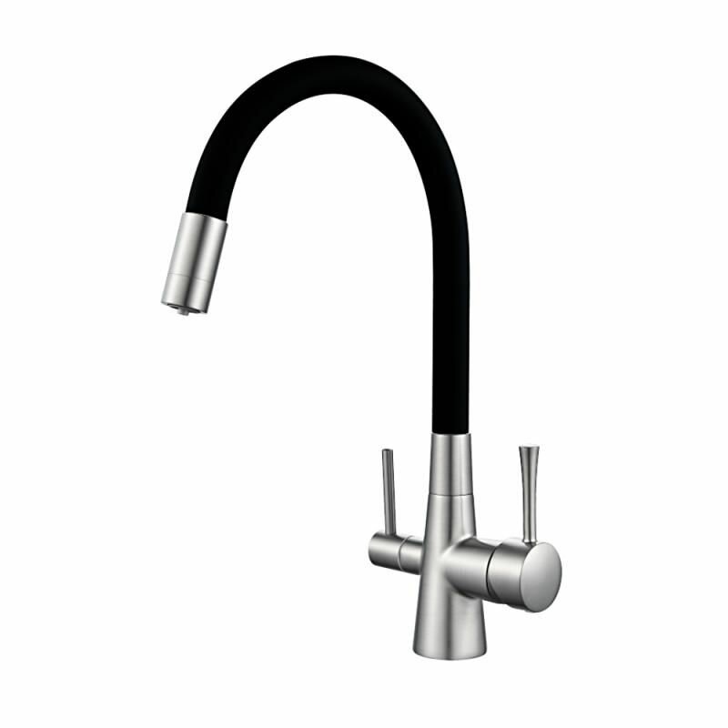 Кухонный смеситель с гибким черым изливом на гайке, сатин, нержавейка T60003BL-2 интересное: