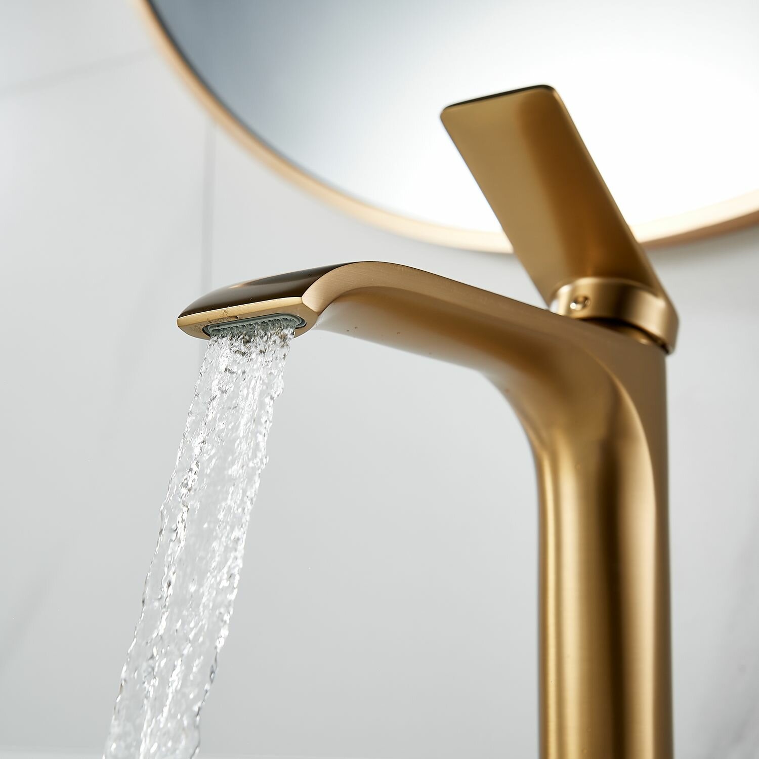 Смеситель высокий для накладной чаши раковины Shevanik с каскадным изливом интересное: