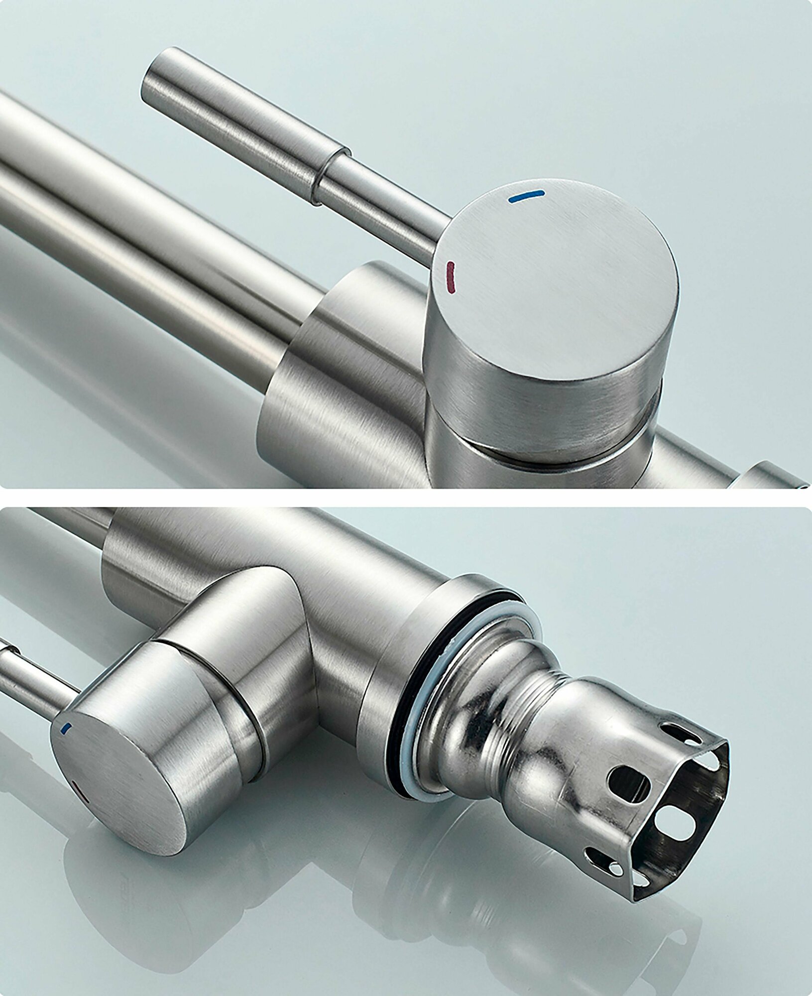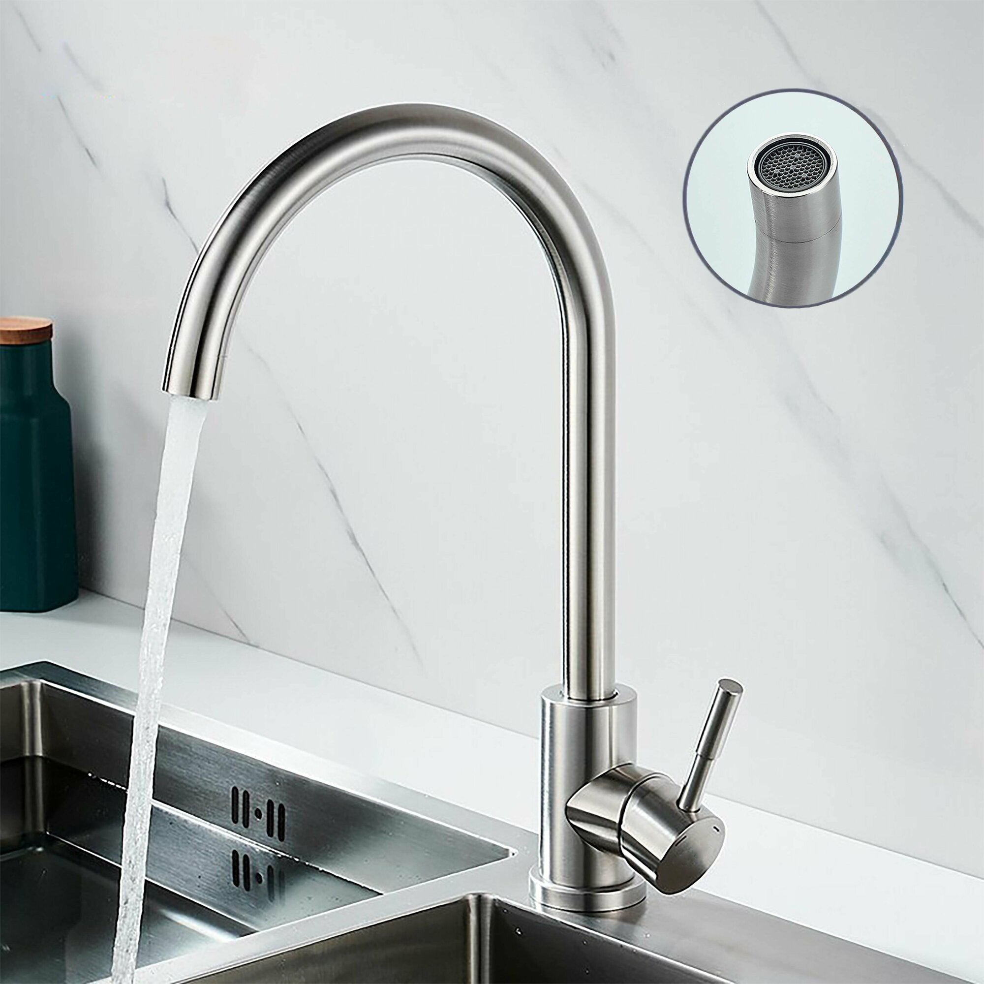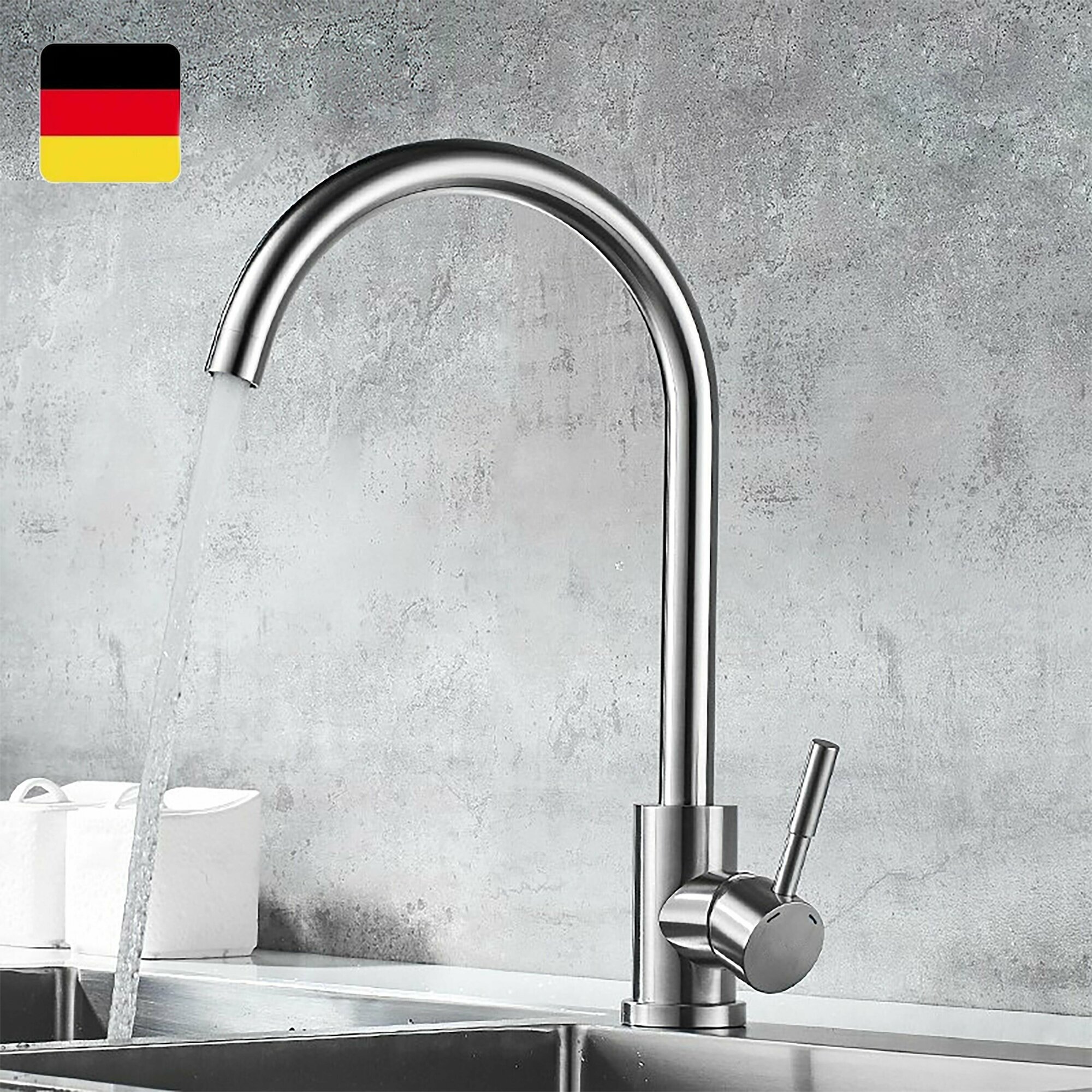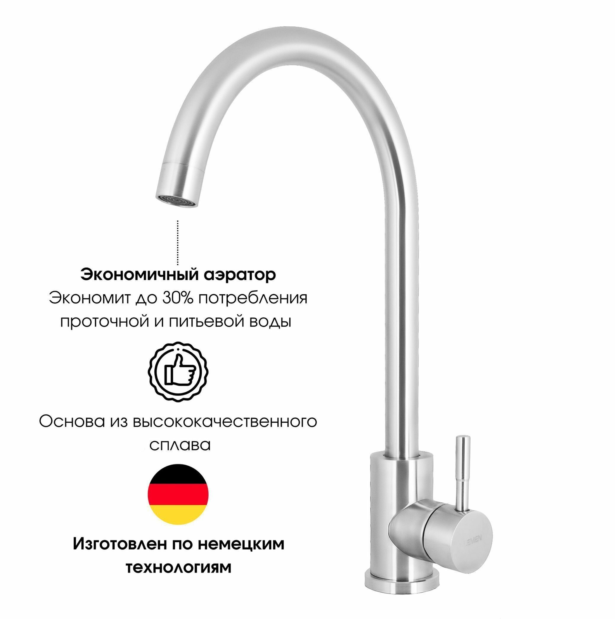 Смеситель для кухни, однорычажный, высокий, поворотный 360 градусов, нержавеющая сталь, сатин стальной интересное: