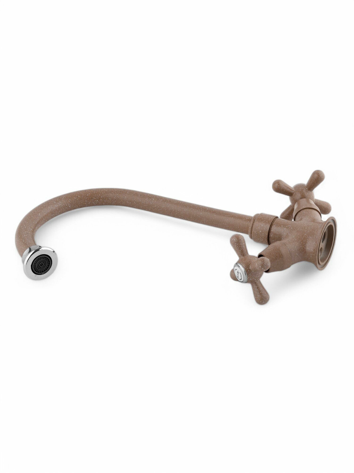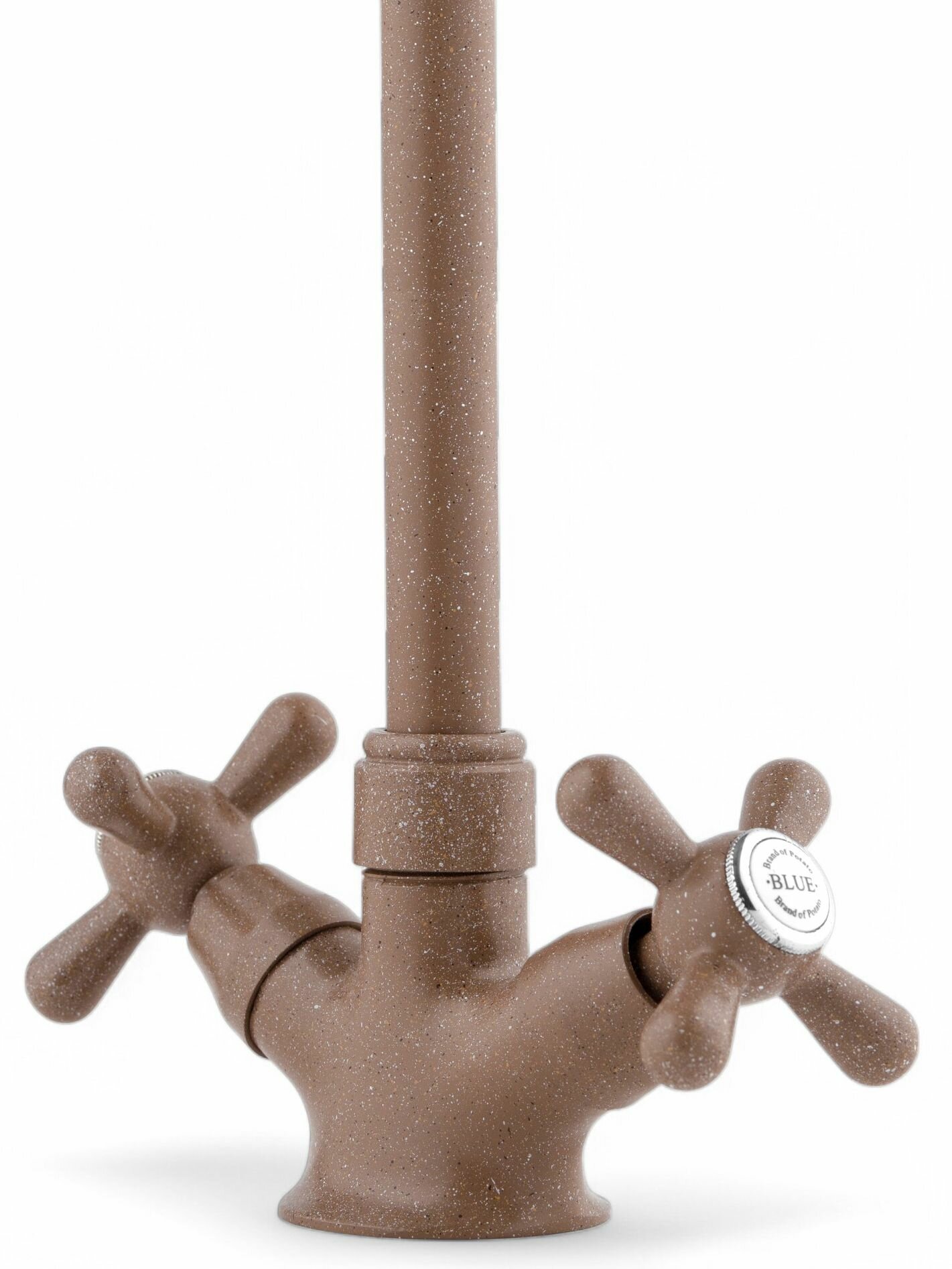 Смеситель для кухни с высоким поворотным изливом и вентильными ручками под керамическую мойку, коричневый с разноцветными вставками интересное: