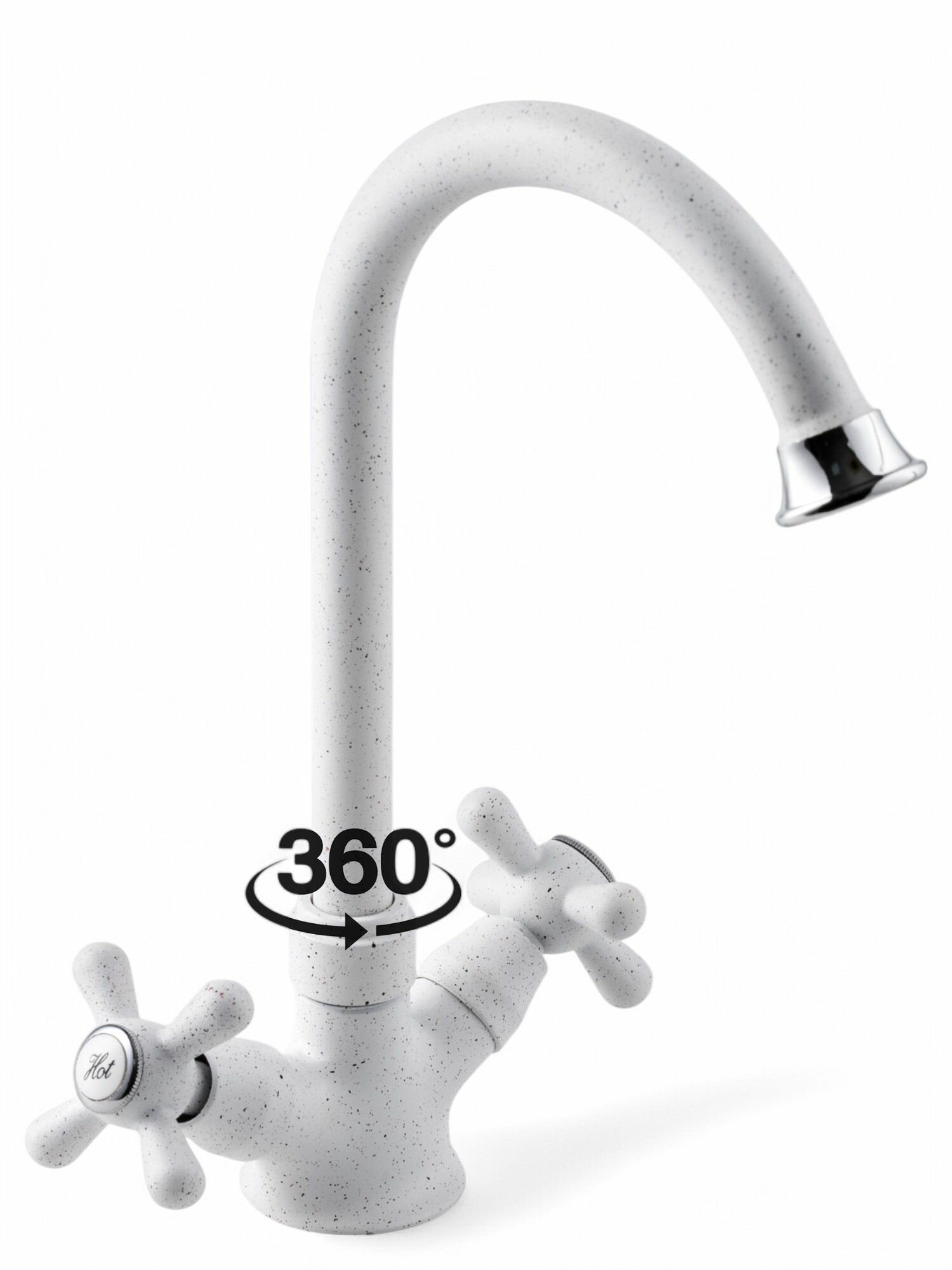 Смеситель для кухни с высоким изливом и вентильными ручками, белый с разноцветными вкраплениями интересное: