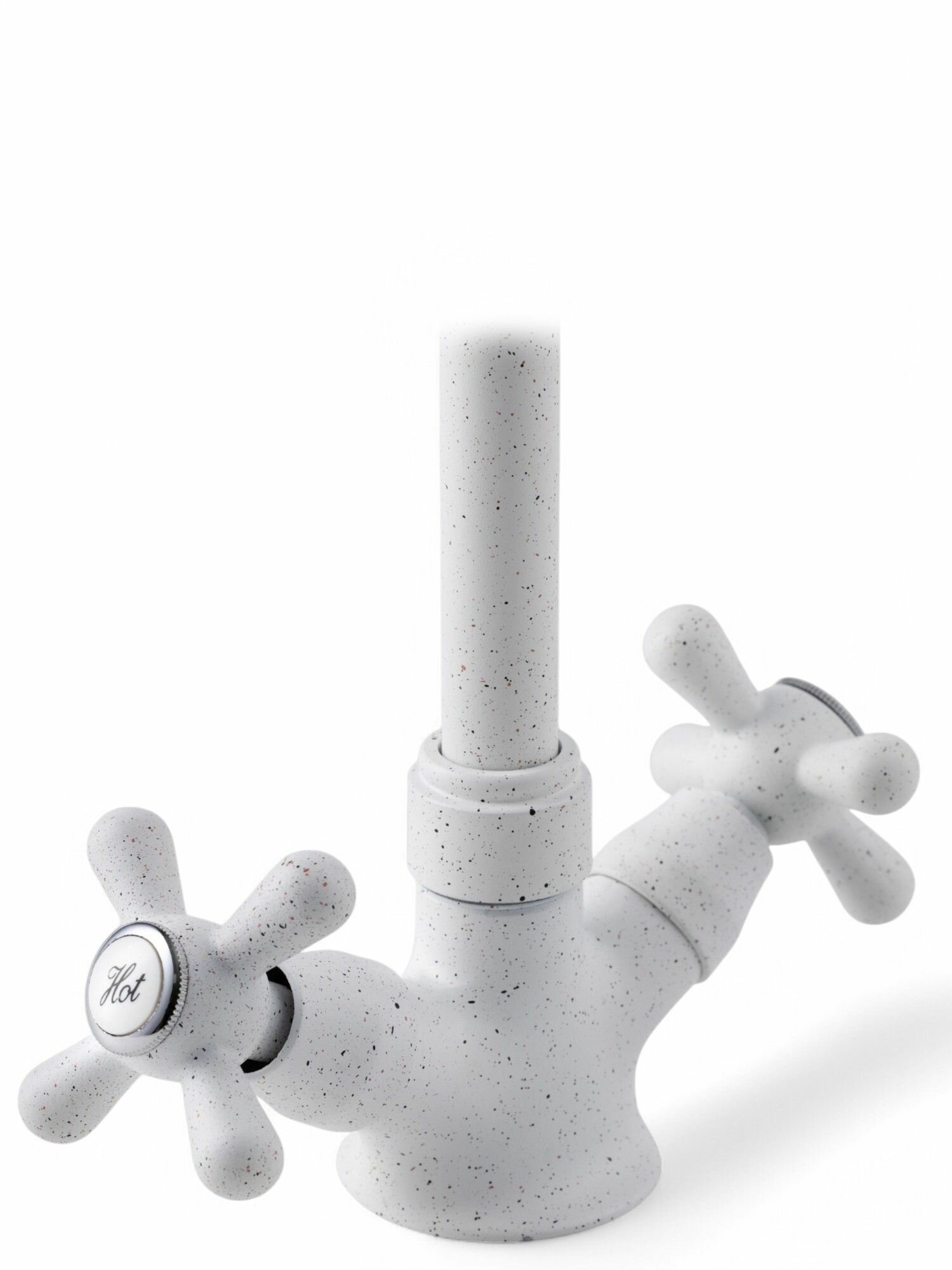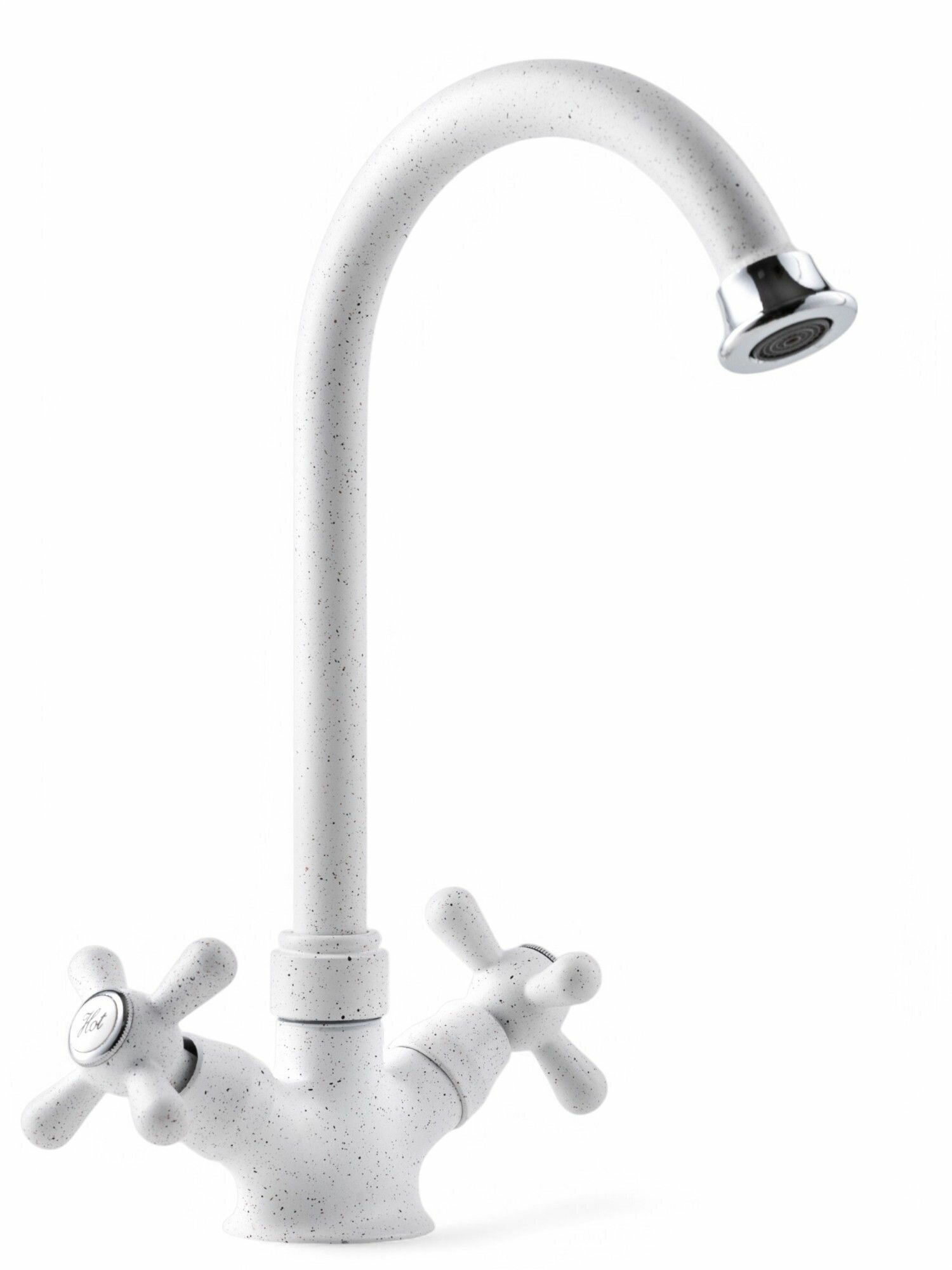 Купить Смеситель для кухни с высоким изливом и вентильными ручками, белый с разноцветными вкраплениями