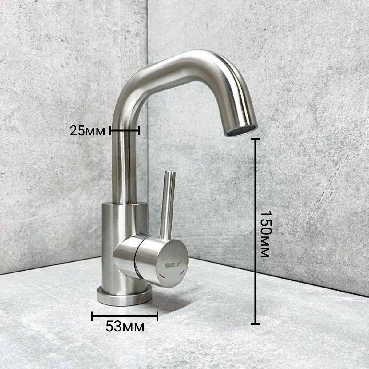 Смеситель для раковины с поворотным изливом BELZ B10809-1, цвет: стальной, материал: нерж интересное:
