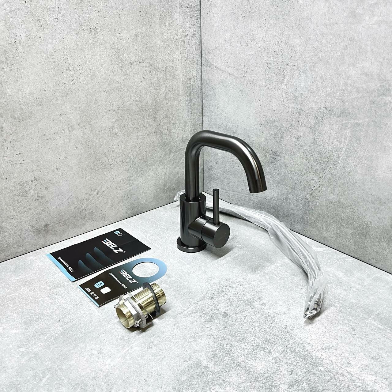 Смеситель для раковины с поворотным изливом BELZ B10810-3, цвет: графит, материал: нерж интересное: