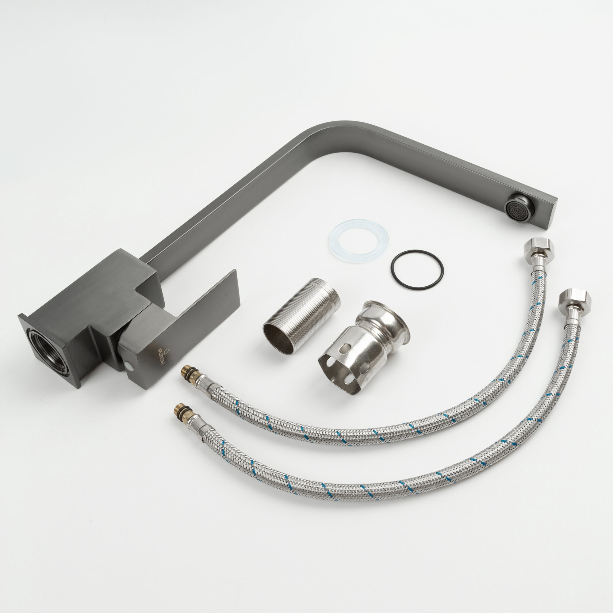 Купить Смеситель для кухни, однорычажный, с высоким поворотным изливом, нержавеющая сталь, серый графит
