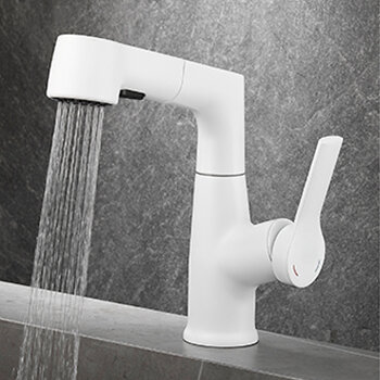 Купить Смеситель для раковины MATRIX SMF-323970/WT белый с выдвижной лейкой и поднимающимся носиком