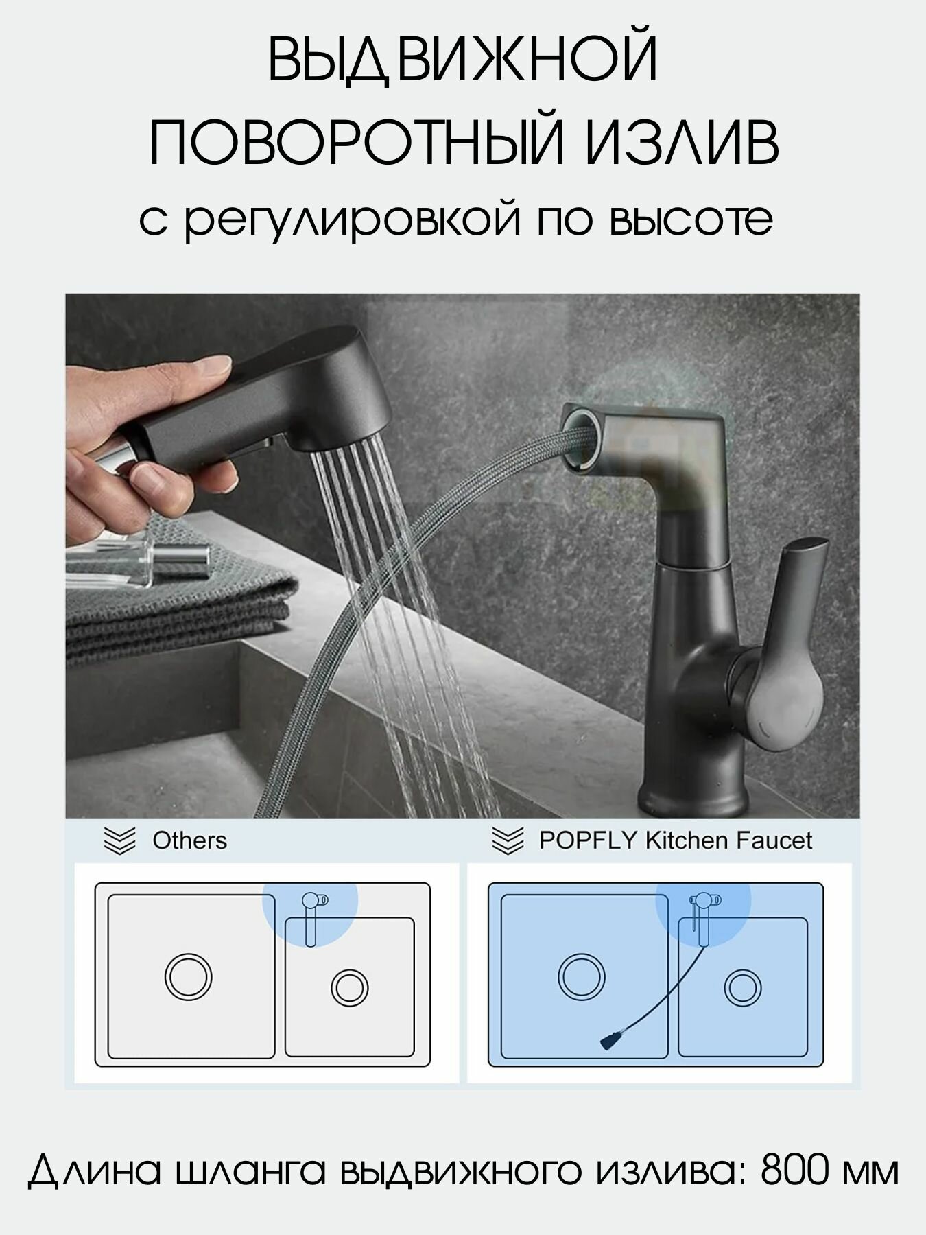 Купить Смеситель для умывальника и кухни MATRIX графит 40 мм с выдвижной лейкой и поднимающимся изливом