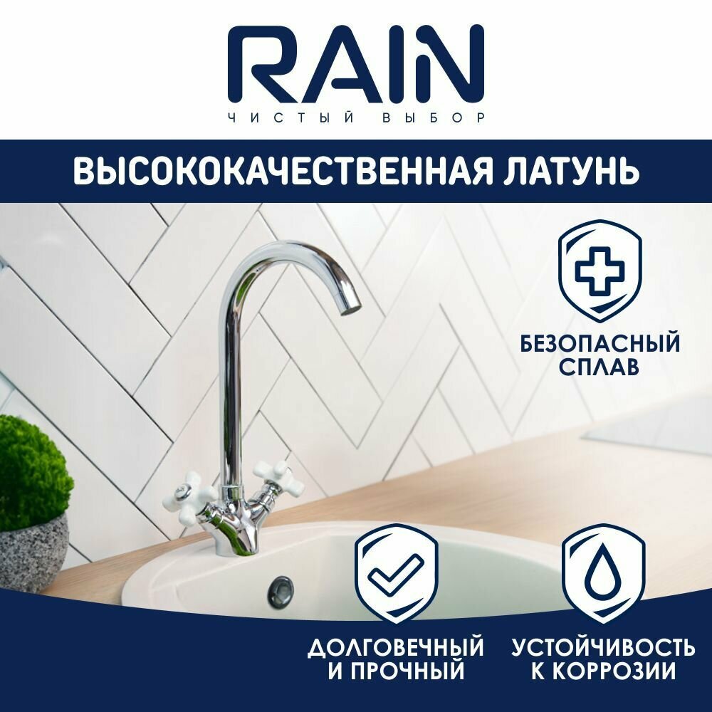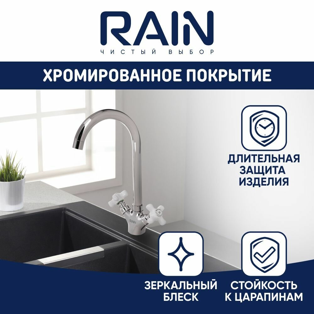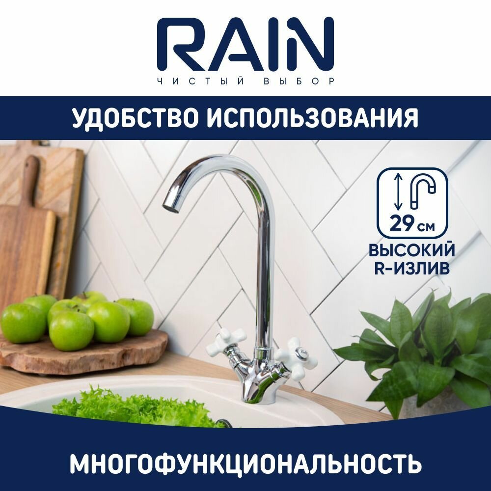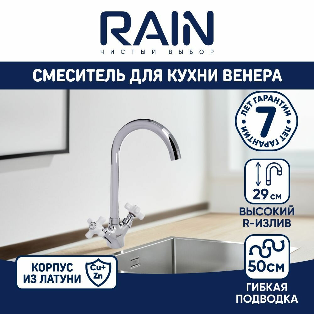 Купить RAIN Смеситель для кухни Венера, высокий излив, керам. кран-буксы 1/2, латунь, хром, ручки керамика