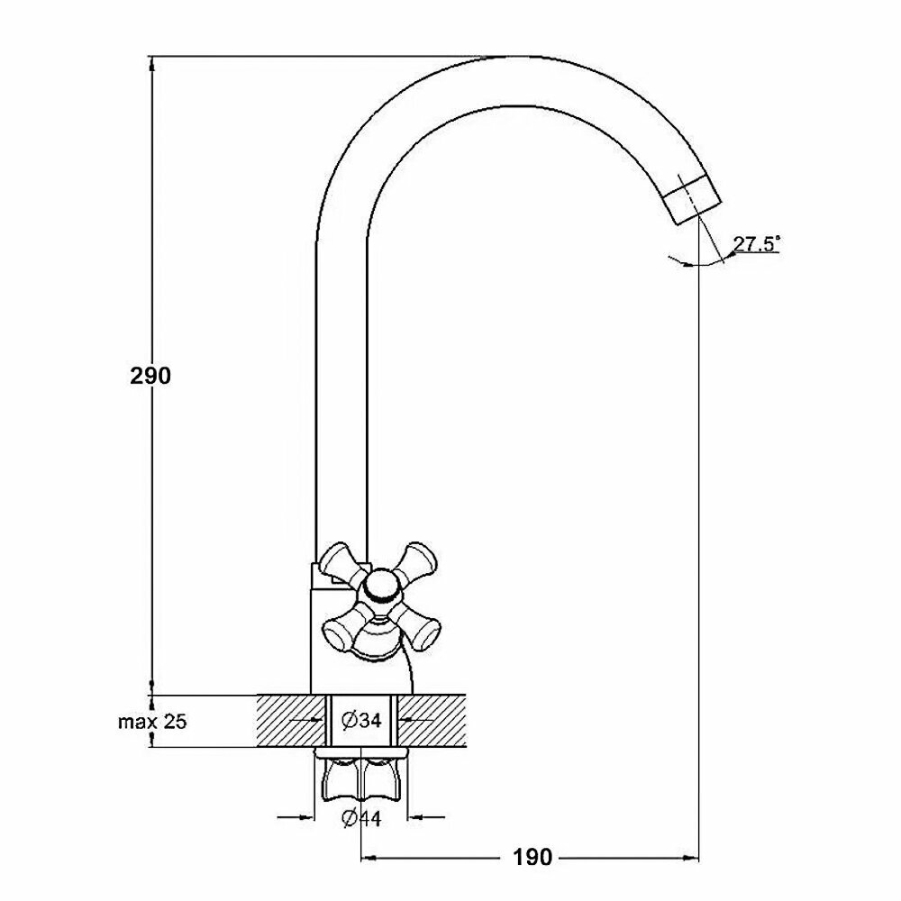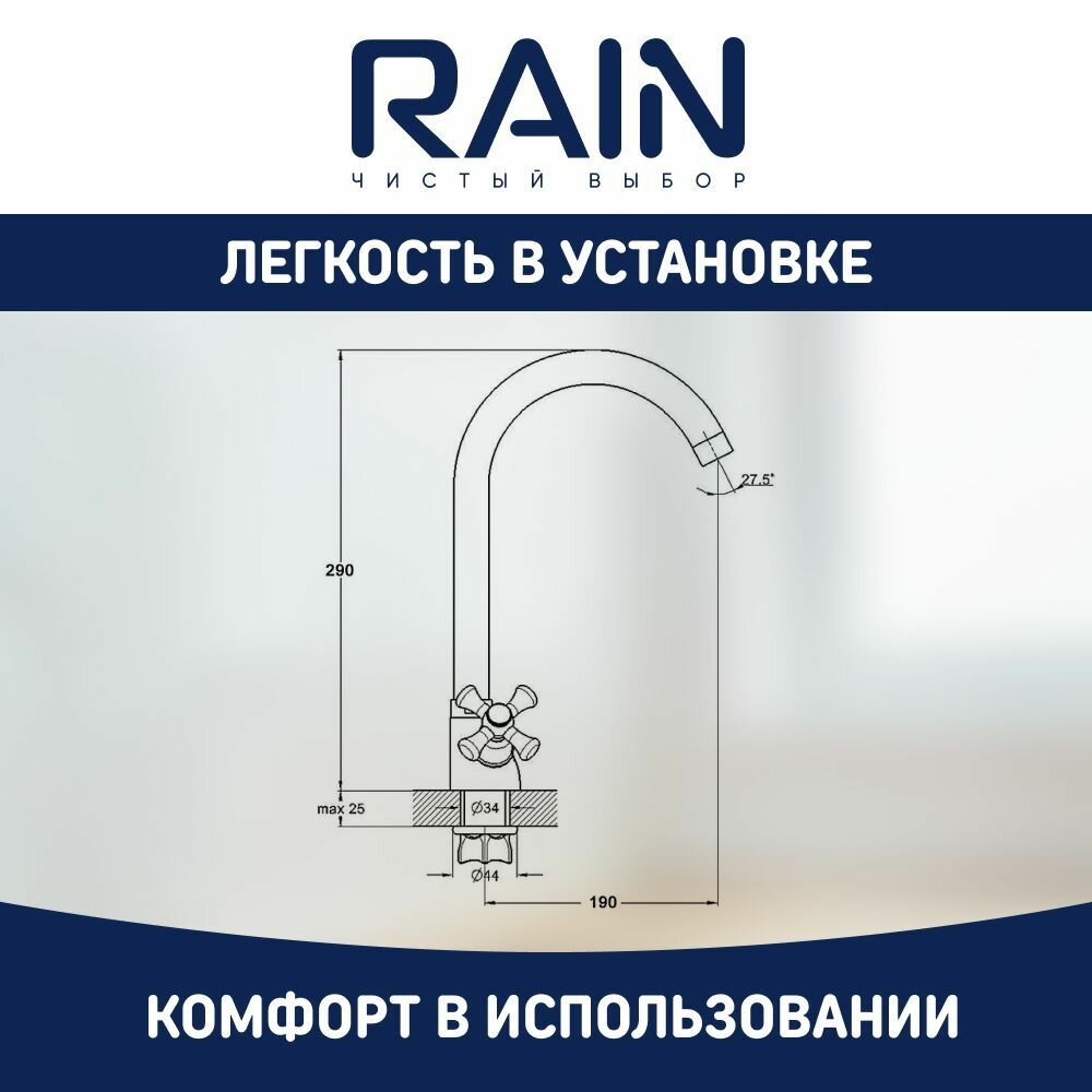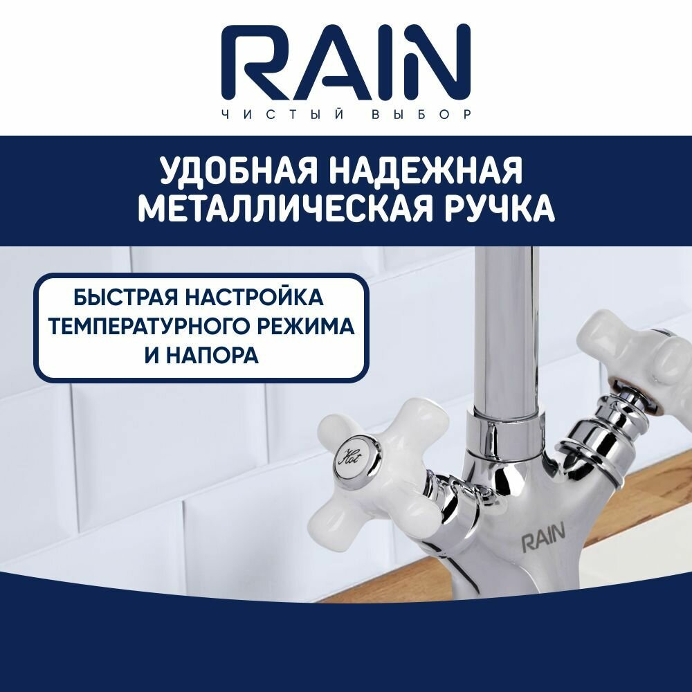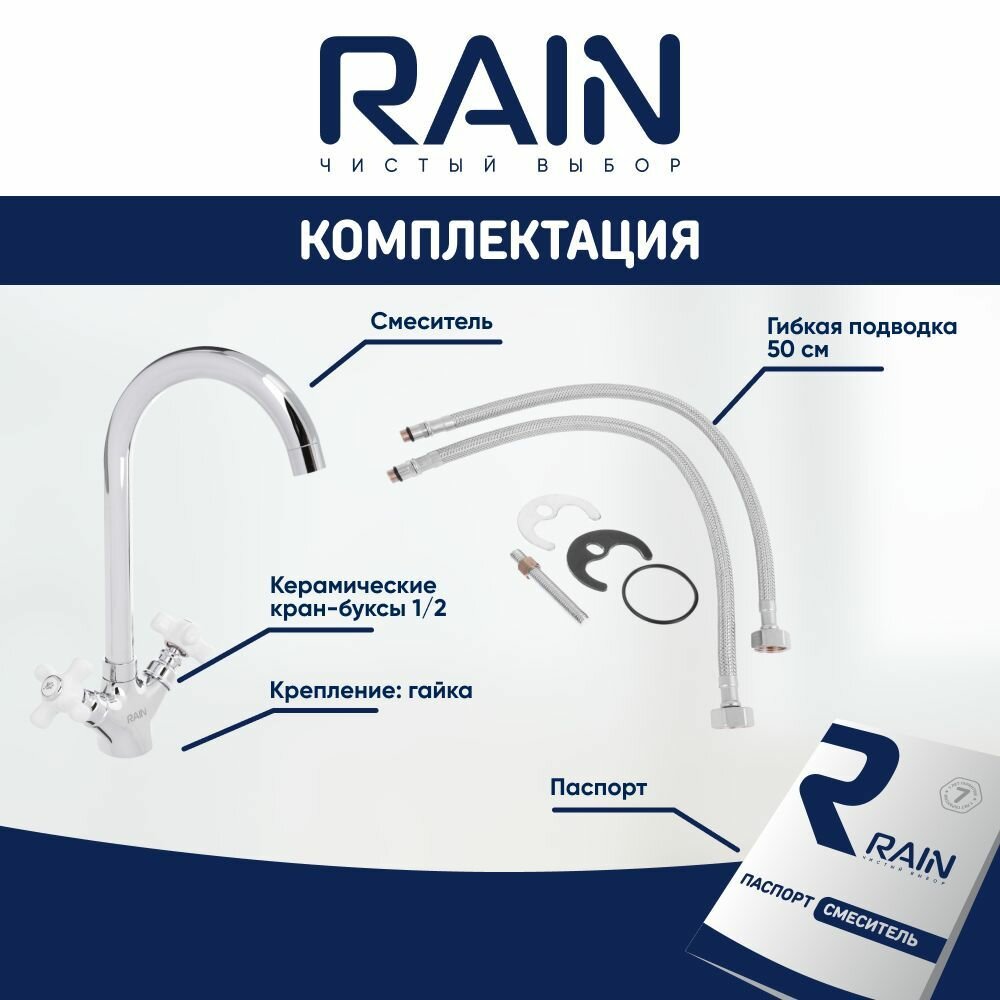 Купить RAIN Смеситель для кухни Венера, высокий излив, керам. кран-буксы 1/2, латунь, хром, ручки керамика