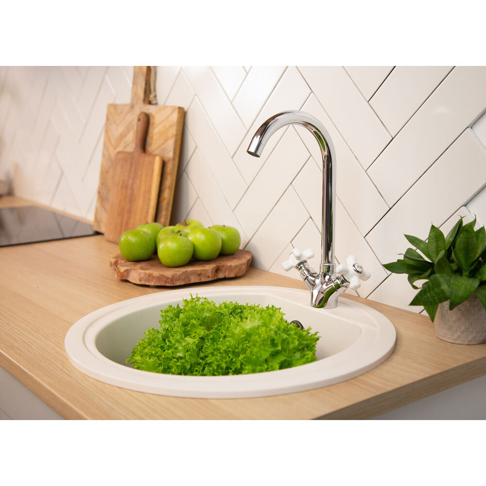RAIN Смеситель для кухни Венера, высокий излив, керам. кран-буксы 1/2, латунь, хром, ручки керамика интересное: