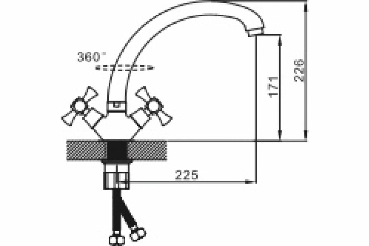 Купить Смеситель на кухню Эверест B42-0647 с высоким изливом, двуручковый, кремовый, крепление гайка