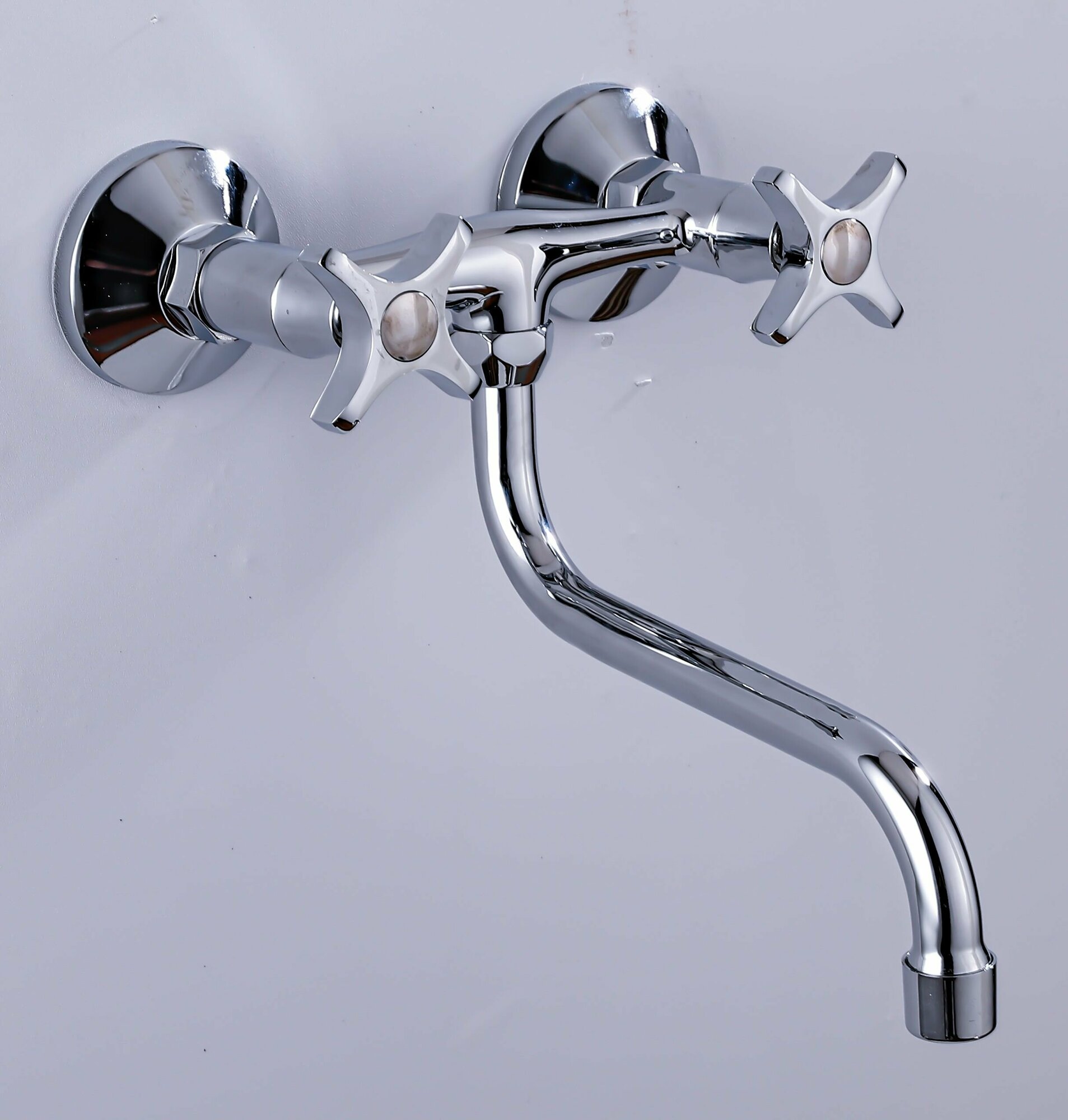 Купить Смеситель на раковину Diadonna D80-246312 настенный, круглый поворотный излив, керамические кран-буксы, хром