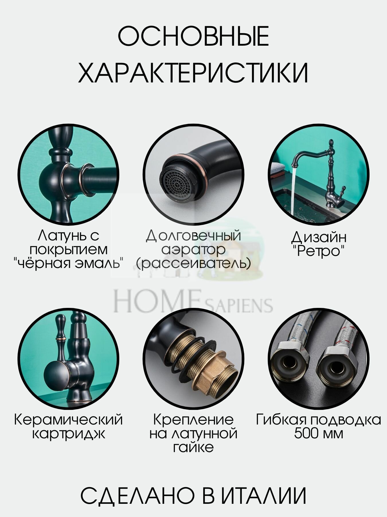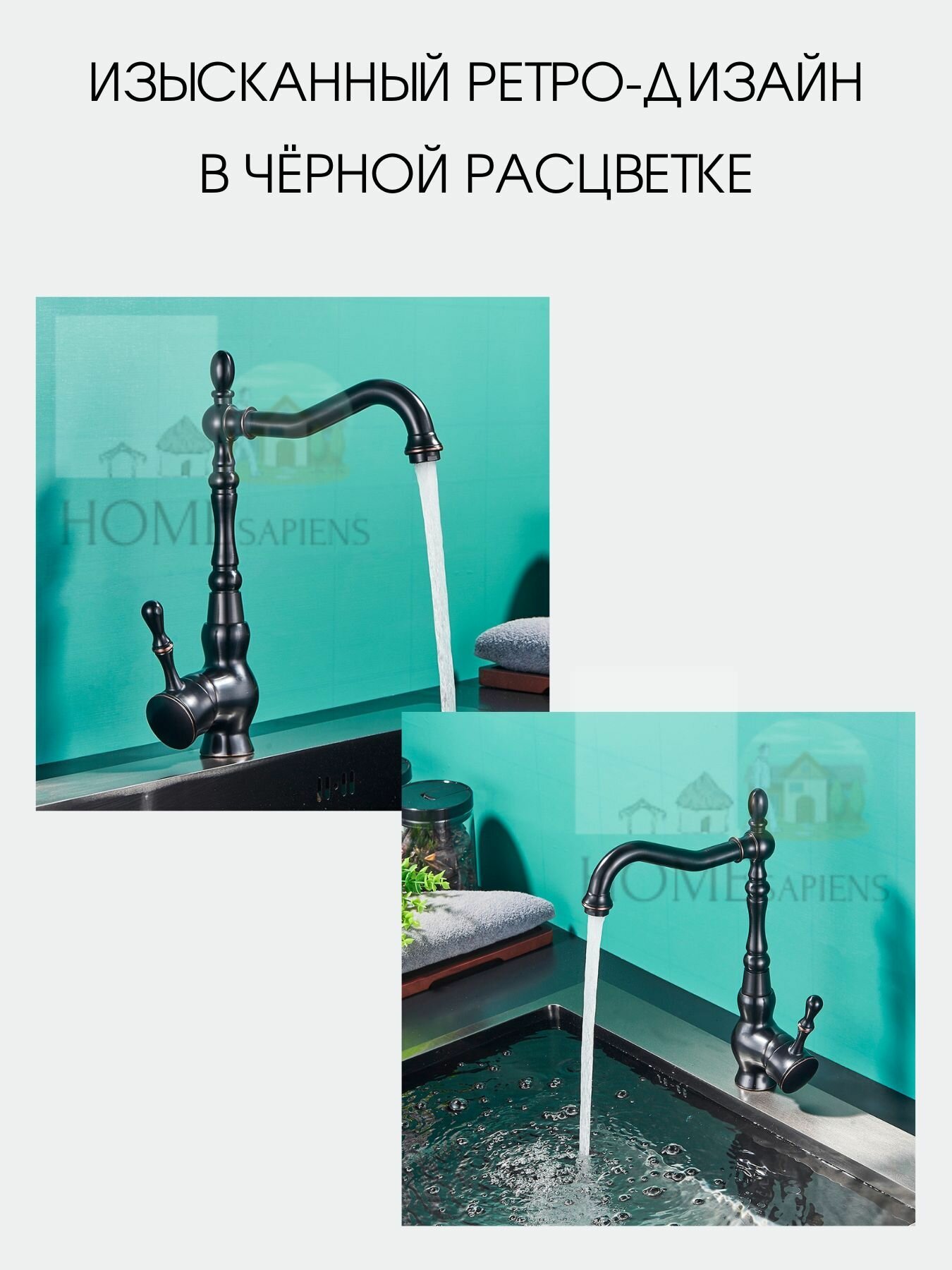 Смеситель для кухни MATRIX (черный) ретро, кухонный итальянский кран интересное: