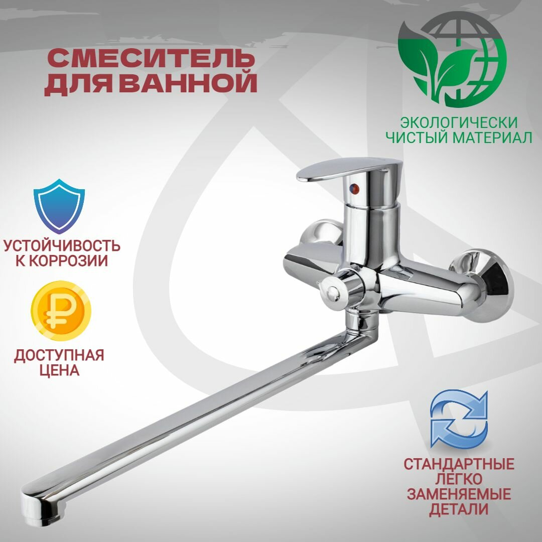 Смеситель для ванны с длинным изливом, хром АБС пластик, шаровый, без лейки и шланга интересное: