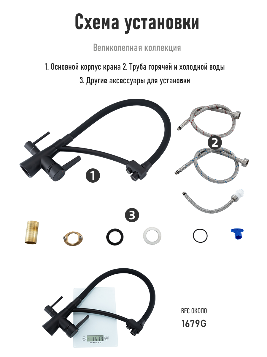 Смеситель для кухни со встроенным фильтром кран для кухни раковины с фильтром Frap черный интересное: