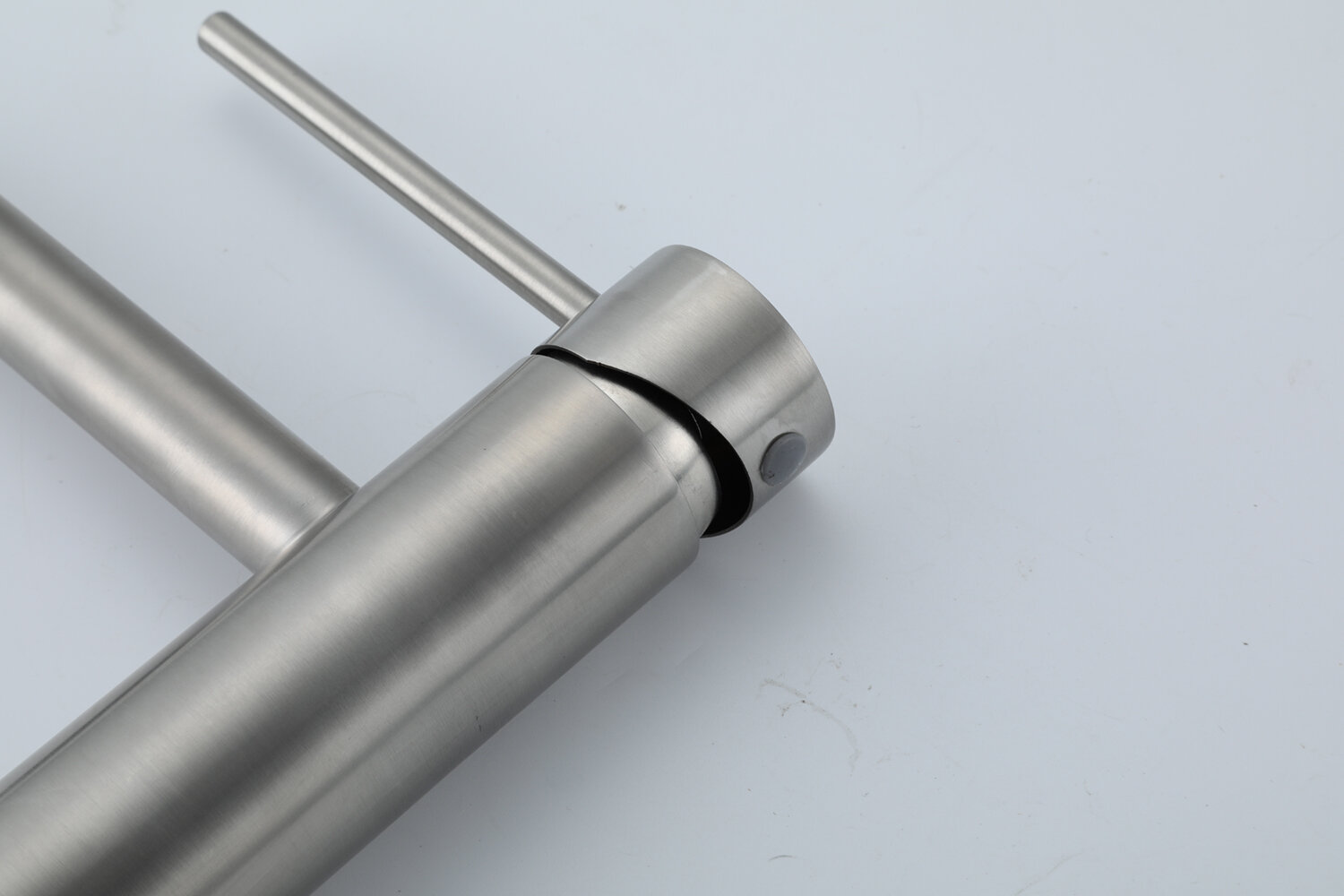 Смеситель для раковины Frap F10807-2 высокий, сатин, нержавеющая сталь, рычажное управление интересное:
