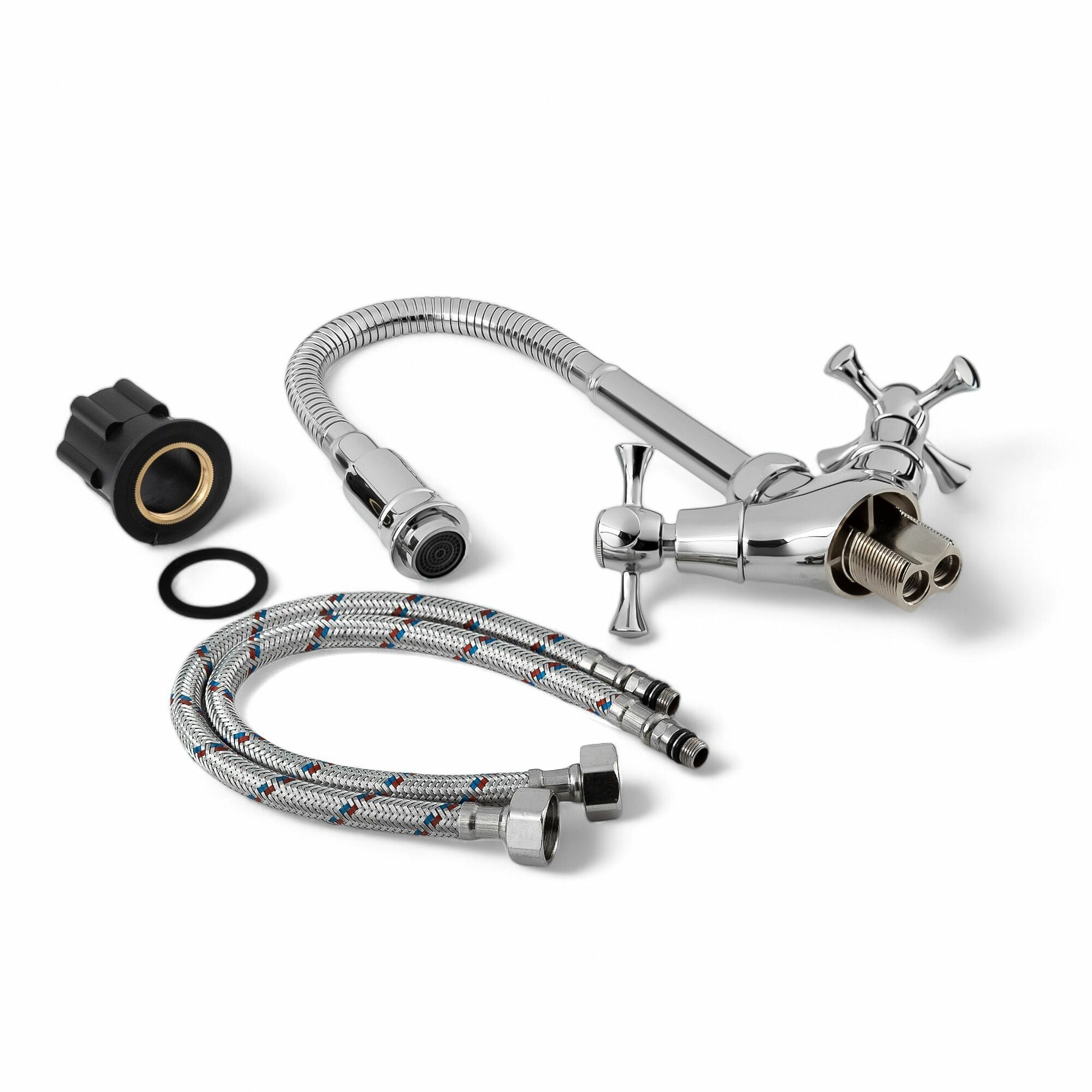 Смеситель для кухни с гибким изливом с вентильными ручками, хром интересное: