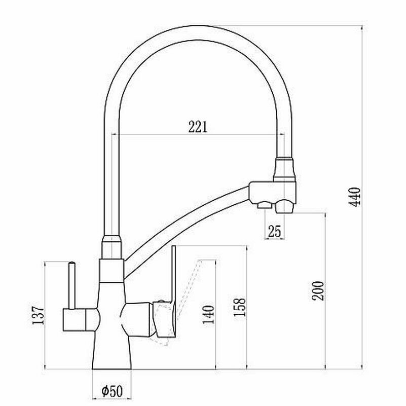 Купить Смеситель для кухни D-LIN H159317 с фильтром для питьевой воды, с гибким, поворотным изливом, сатин.