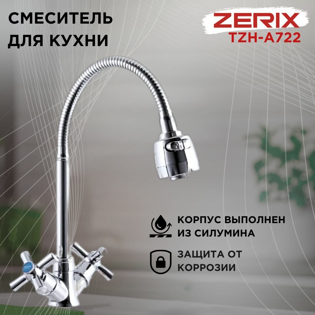 Купить Смеситель для кухни ZERIX TZH - A722 REFLECTOR, с гибким изливом