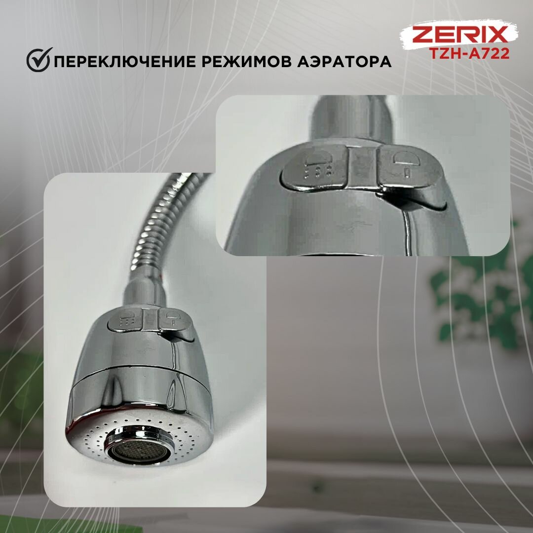 Смеситель для кухни ZERIX TZH - A722 REFLECTOR, с гибким изливом интересное: