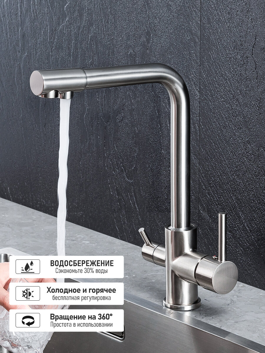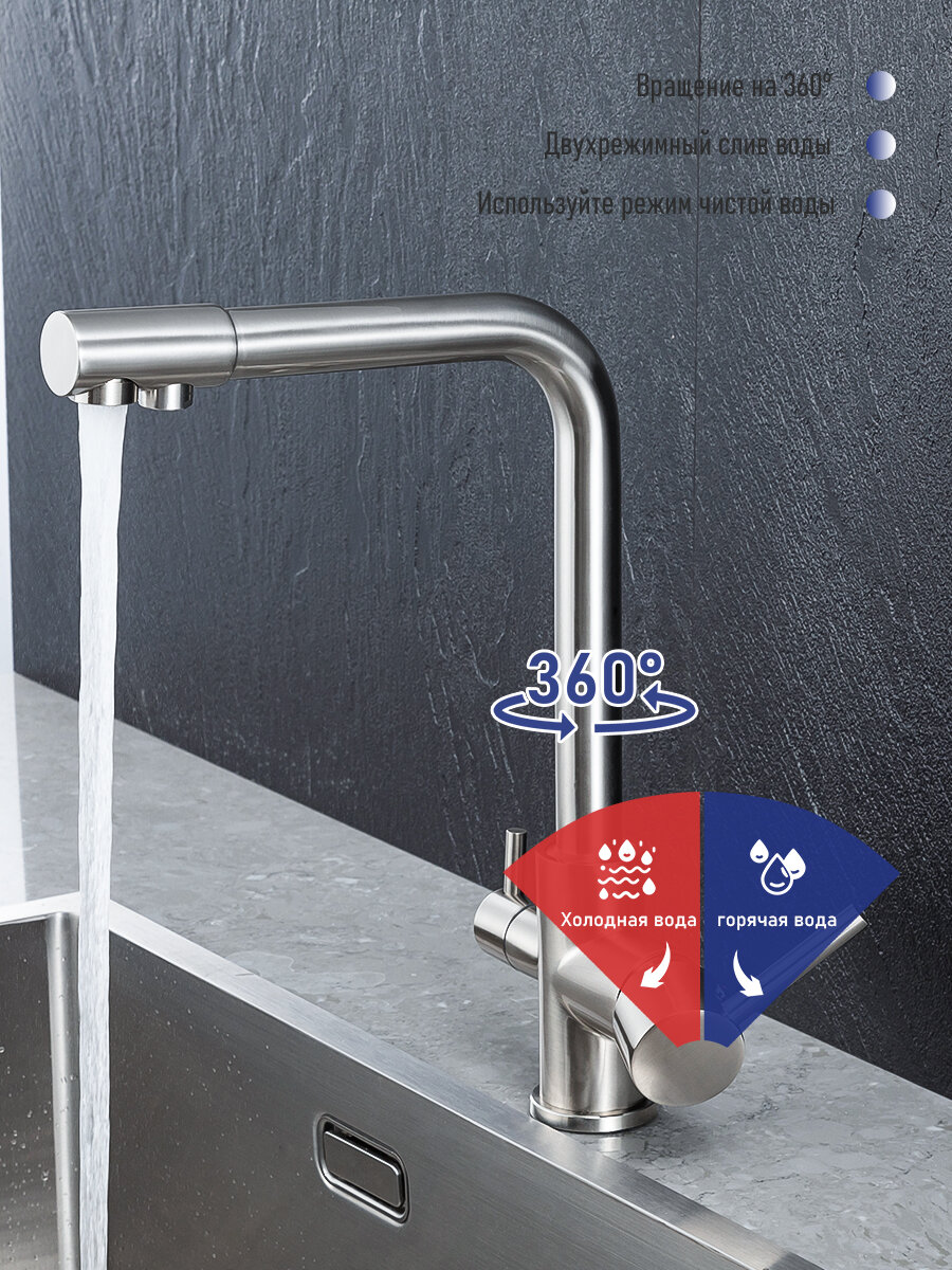Смеситель кухонный Frap Y400020, с фильтром, нержавеющая сталь, хром интересное: