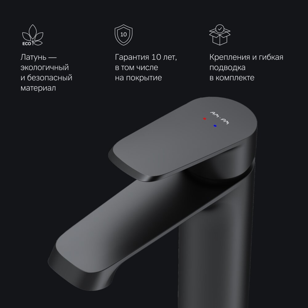 Смеситель AM.PM Func для умывальника, однозахватный, высокий излив, черный F8F92022