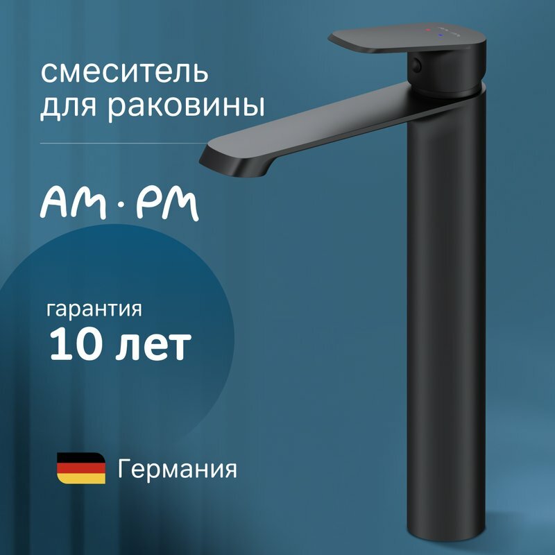 Смеситель AM.PM Func для умывальника, однозахватный, высокий излив, черный F8F92022