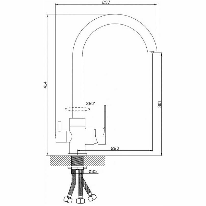 Купить Смеситель на кухню Diadonna D86-446117BL с краном для фильтрованной воды, чёрный с хромом, крепление гайка