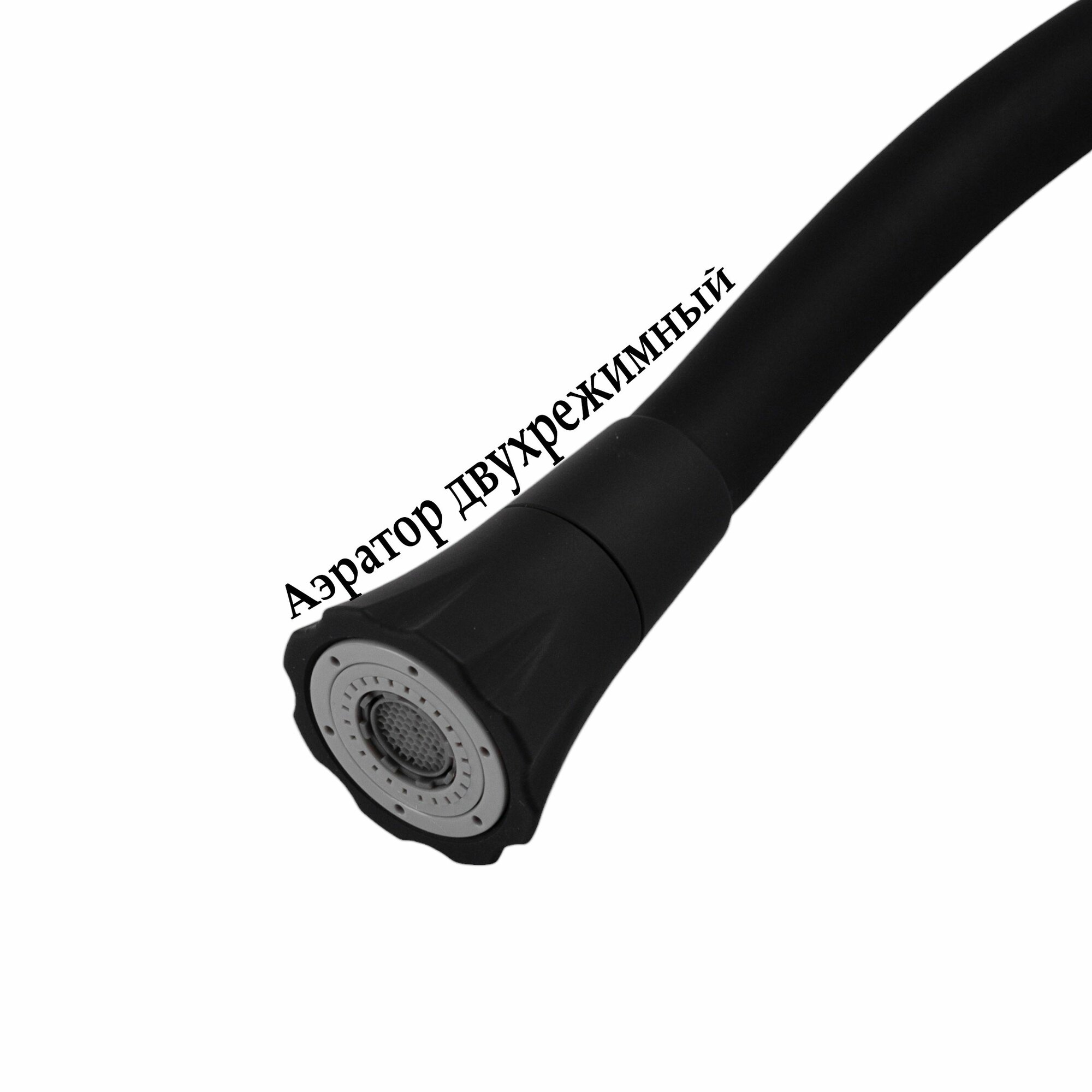 Смеситель для кухни вентильный с гибким изливом и двухрежимным аэратором, черный матовый интересное: