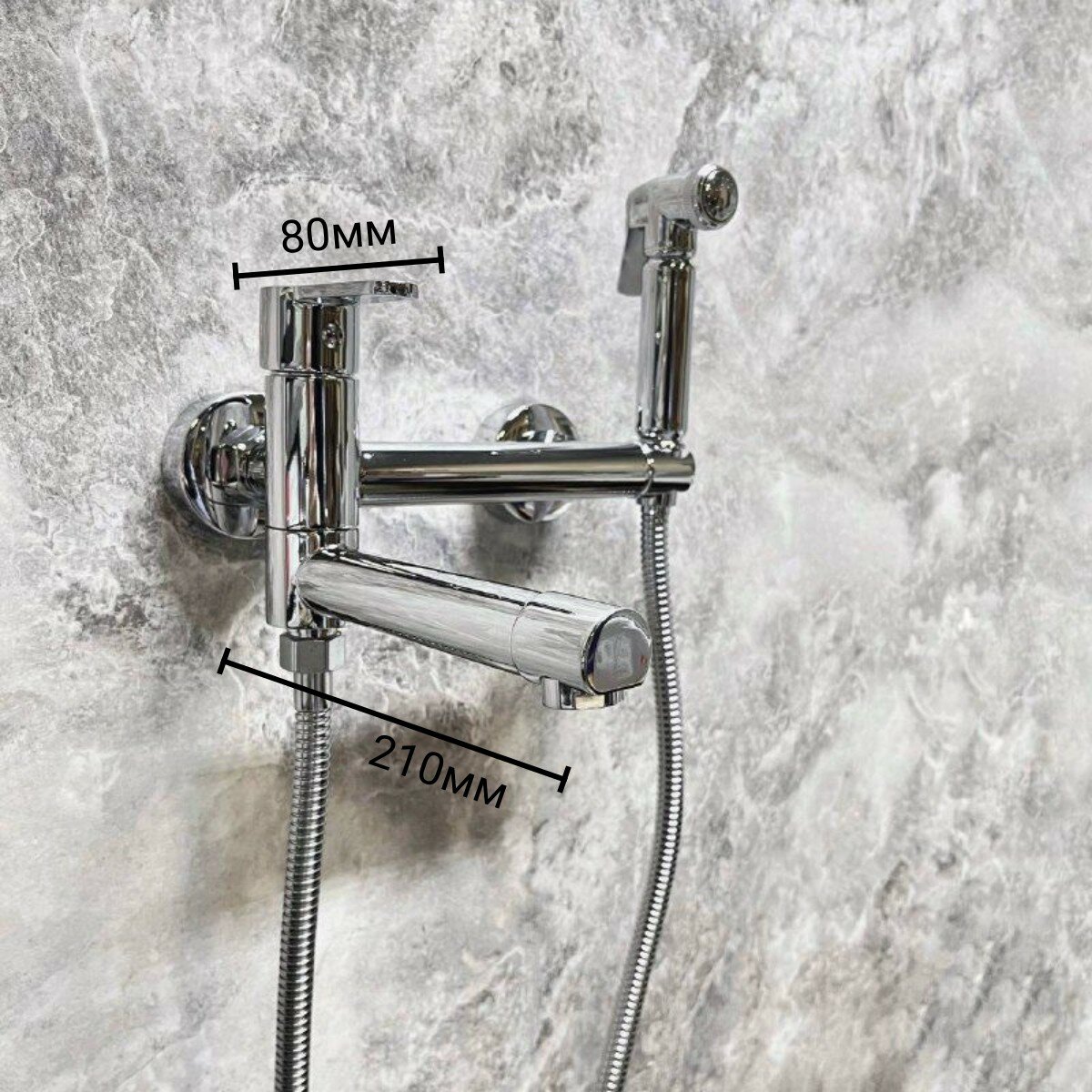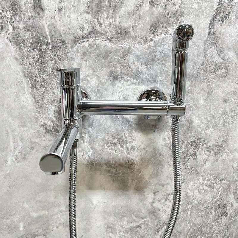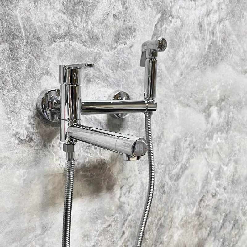 Смеситель D-LIN D181202 с гигиеническим душем и поворотным изливом (используется как переключатель на лейку), настенный интересное: