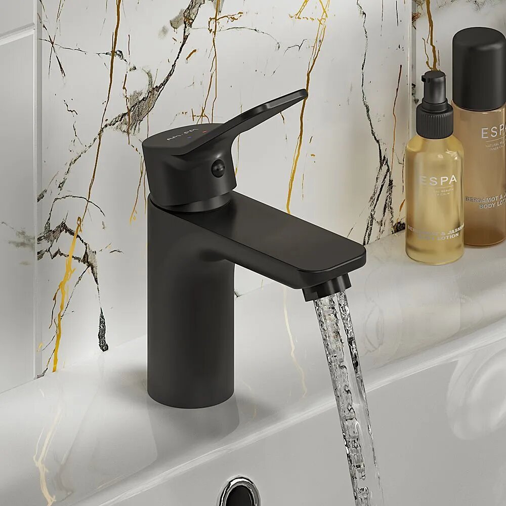 Смеситель для раковины в ванную AM.PM Brava черный, с металлическим черным донным клапаном интересное: