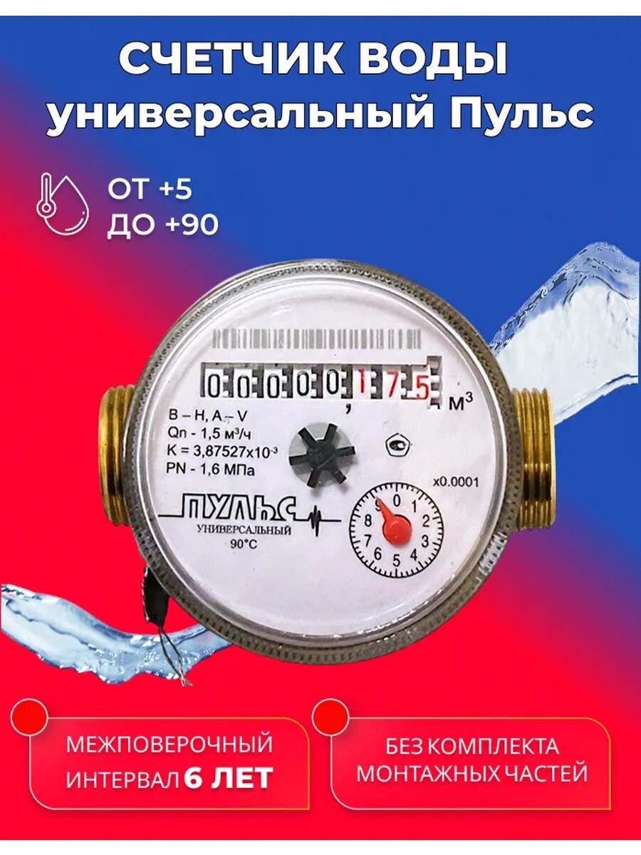Счетчик воды универсальный Пульс 80мм без комплекта монтажных частей интересное: