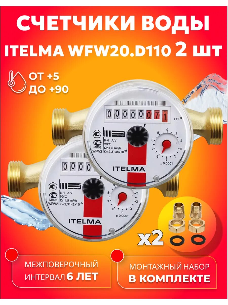 Счетчики воды ITELMA 110мм Комплект 2 шт с комплектом монтажных частей интересное: