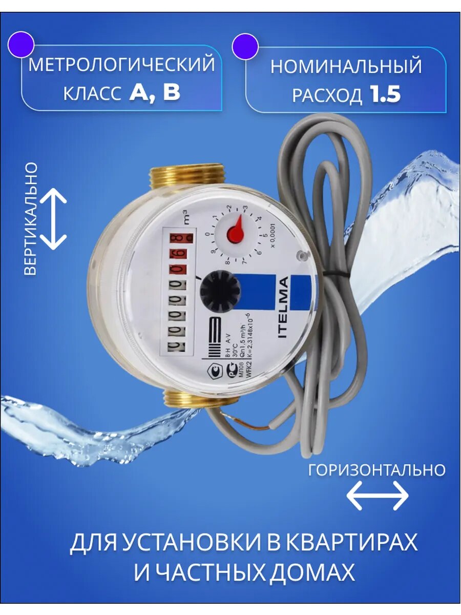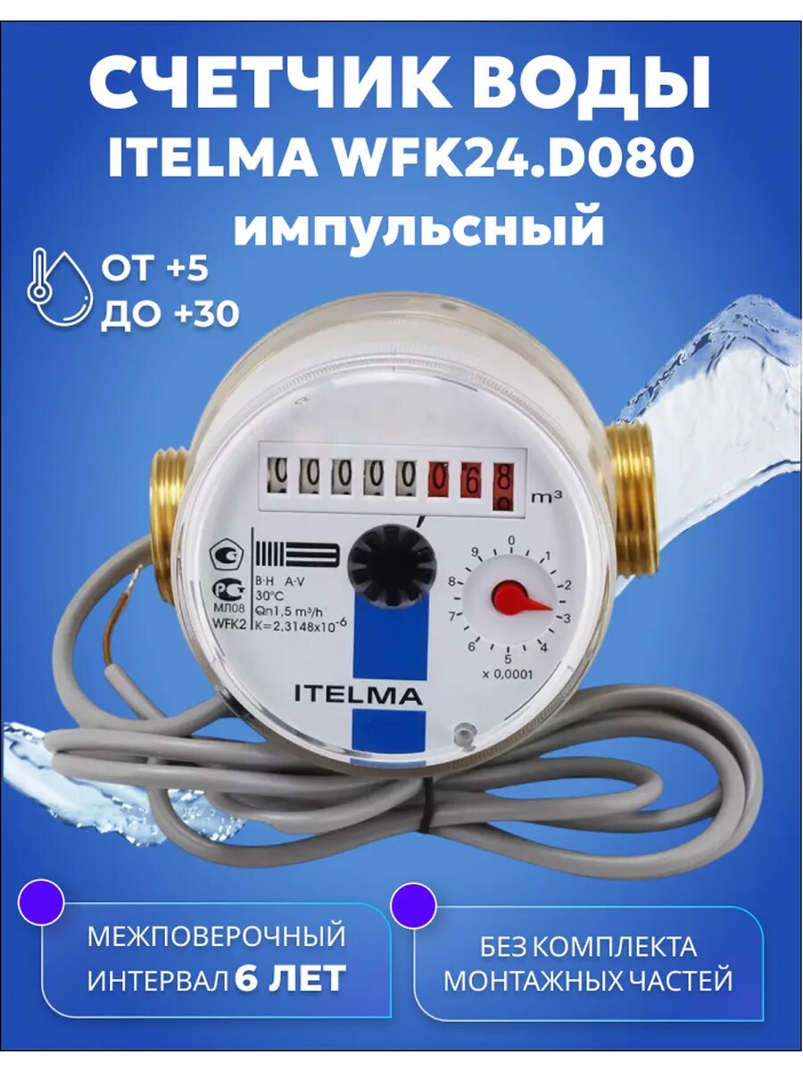 Счетчик холодной воды ITELMA IMP Ду 15 80мм без комплекта монтажных частей интересное: