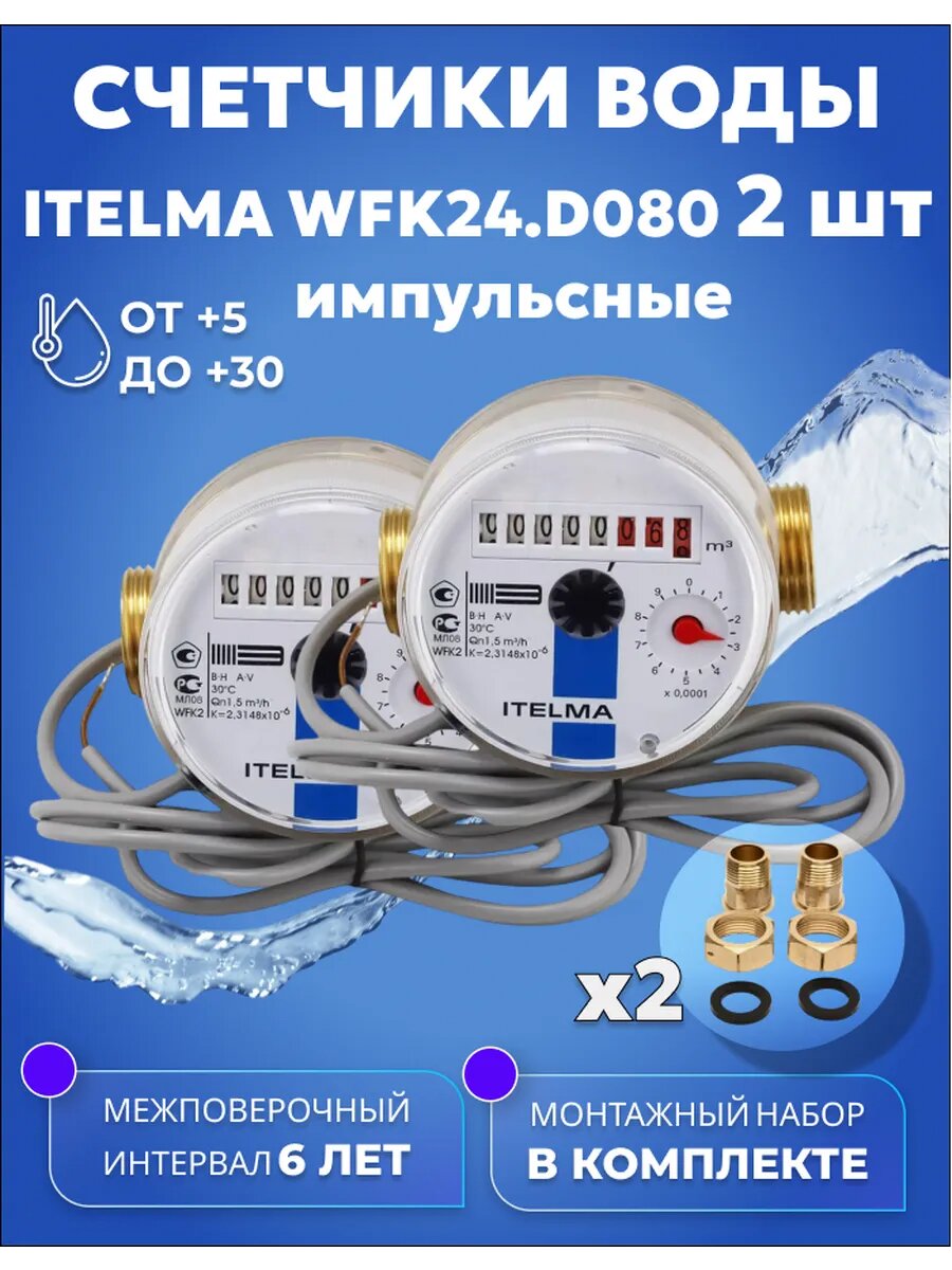 Счетчики воды ITELMA IMP Ду 15 80мм Комплект 2 шт с комплектом монтажных частей интересное:
